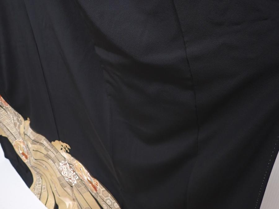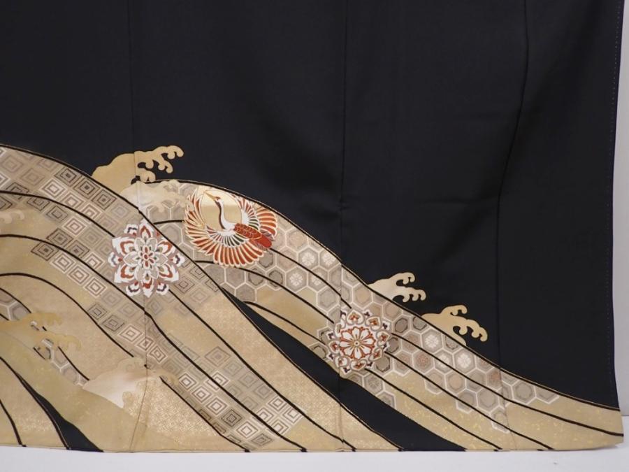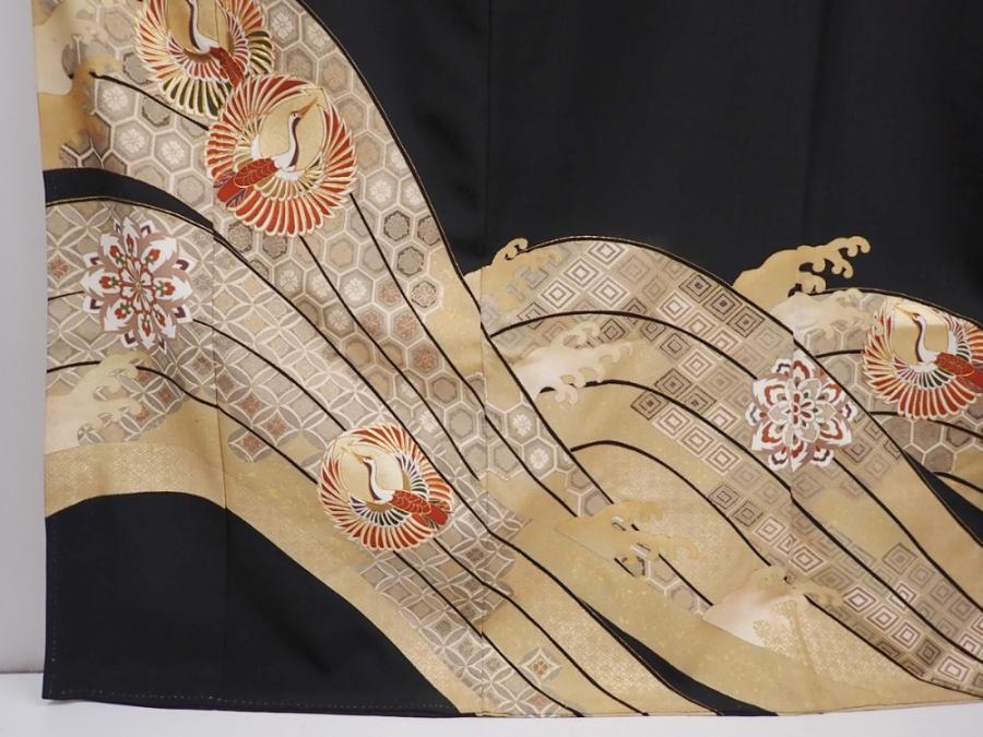 5926T07z1460 Vintage Japanese Kimono Silk TOMESODE Flying crane Black
