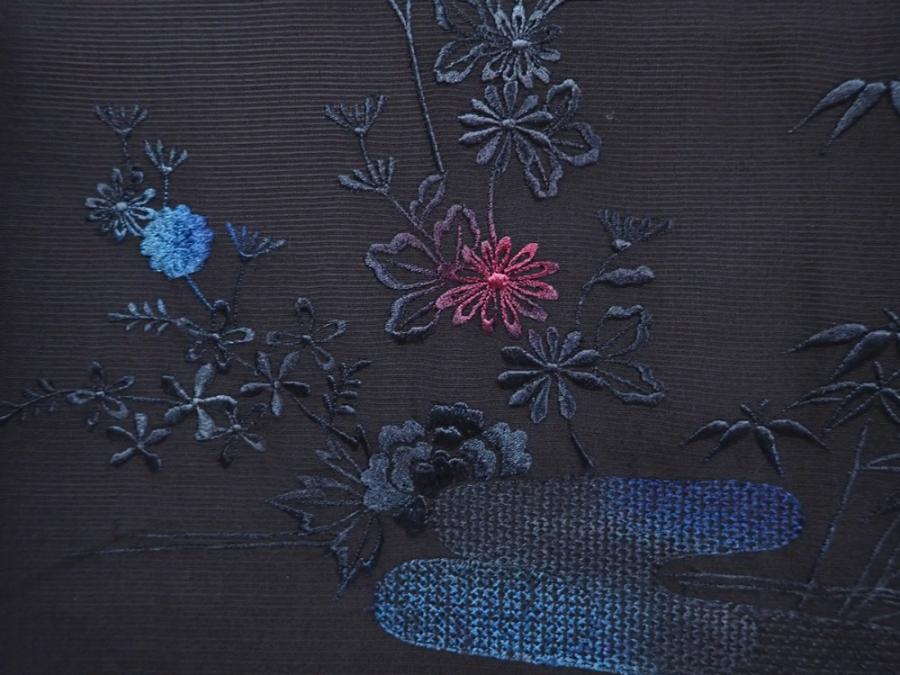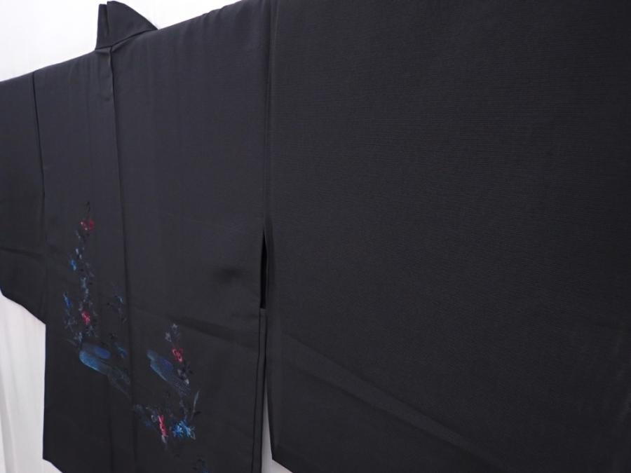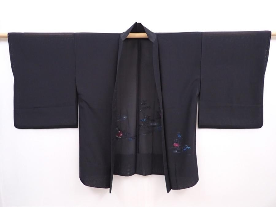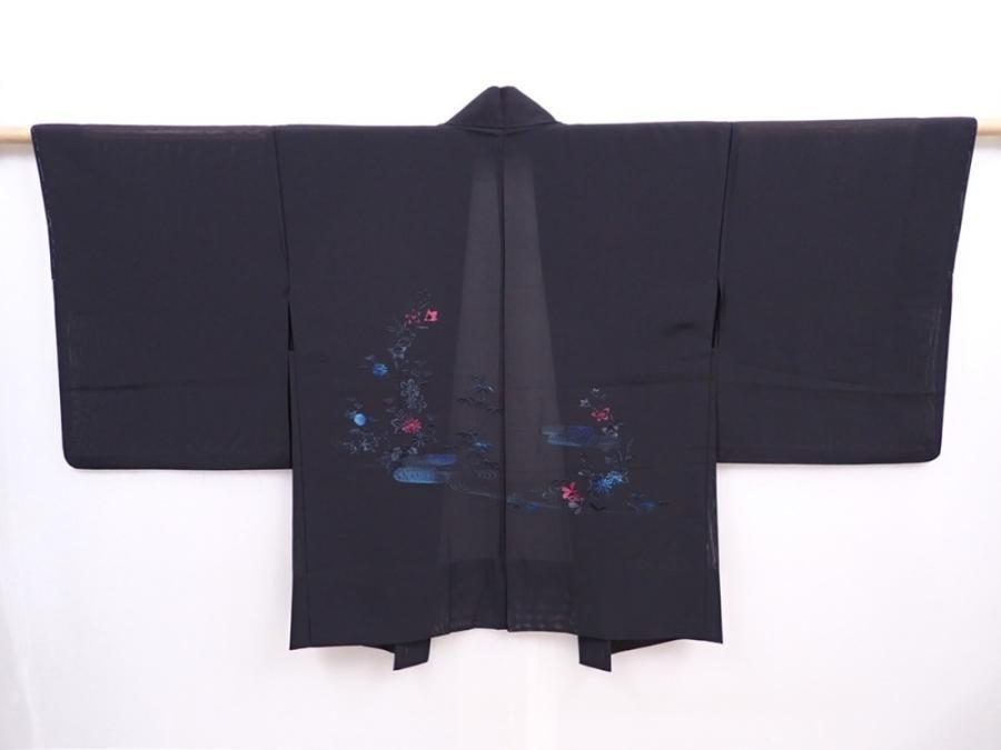 5919T02z310 Vintage Japanese Kimono Silk See through HAORI Flowers Black