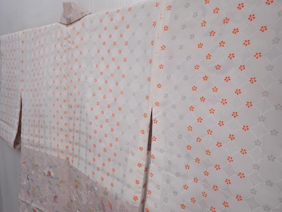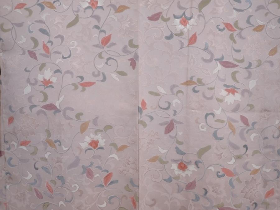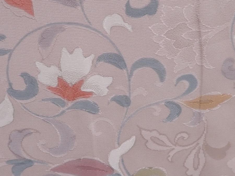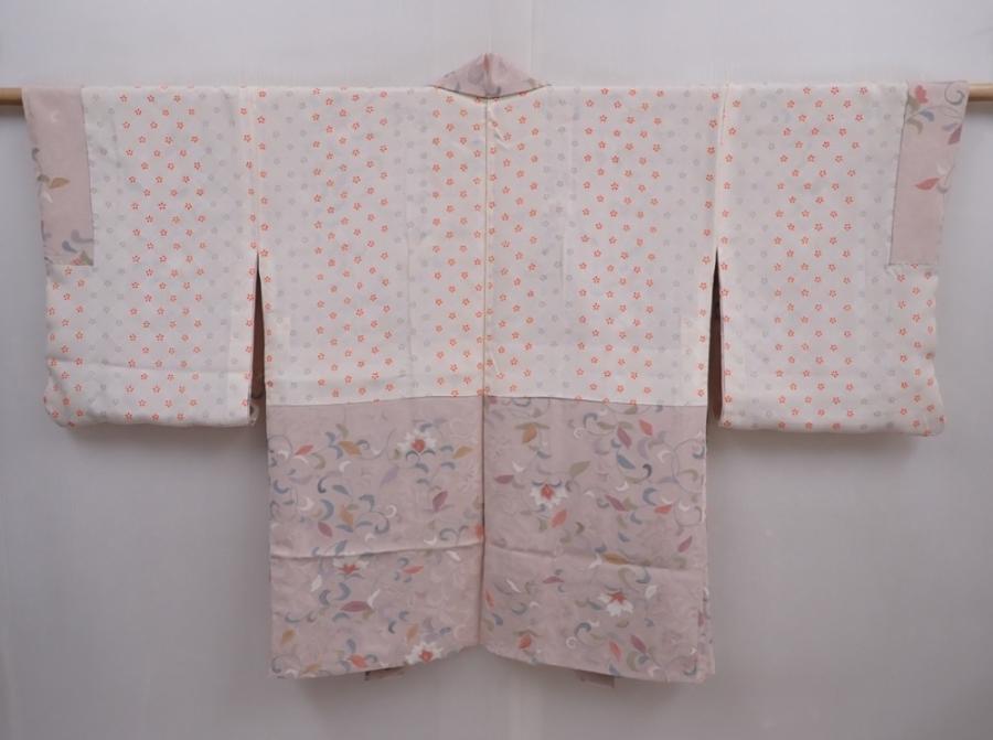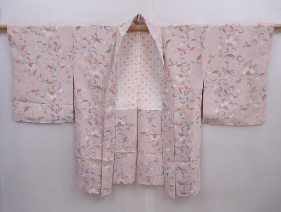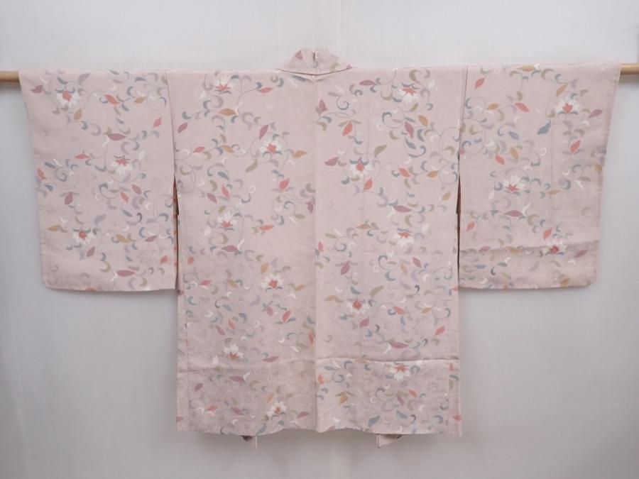 5919T04z590 Vintage Japanese Kimono Silk HAORI Flower Ash pink