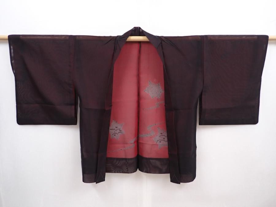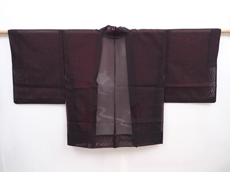 5927T03z190 Vintage Japanese Kimono Silk See through HAORI Maple Black