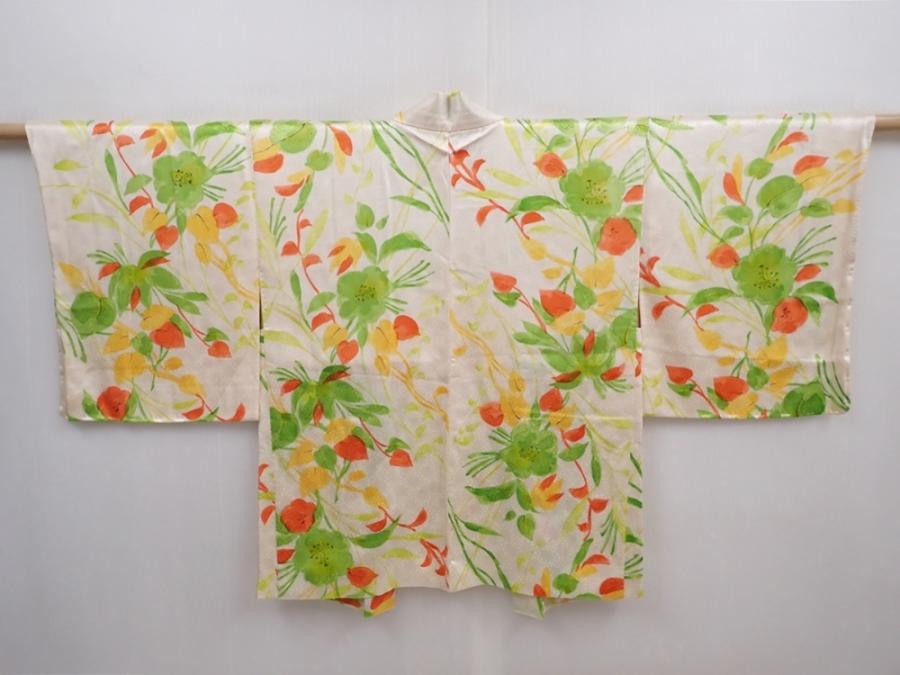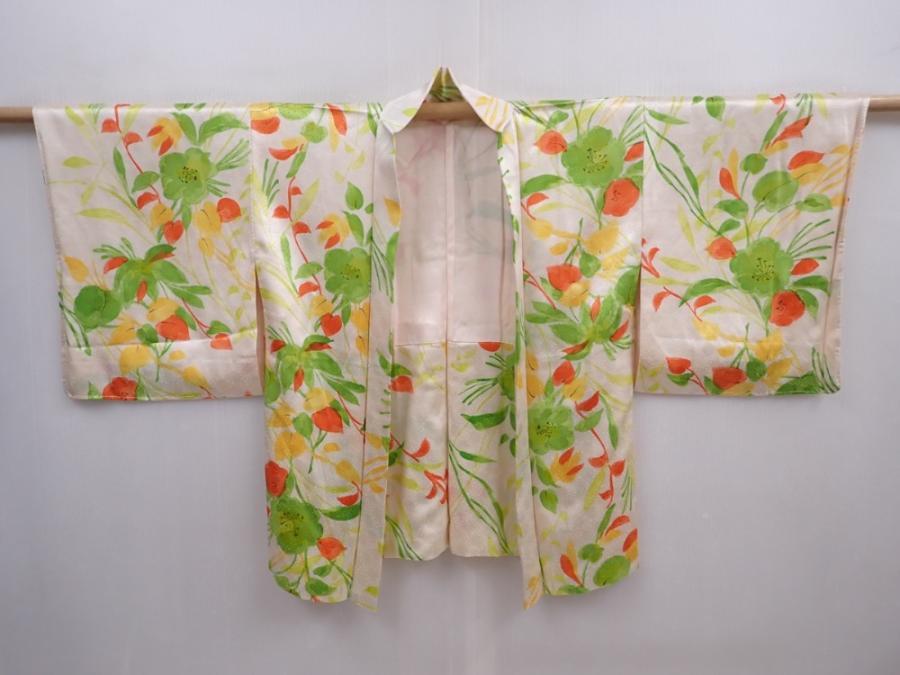 5927T04z550 Vintage Japanese Kimono Silk HAORI Flower Off-white