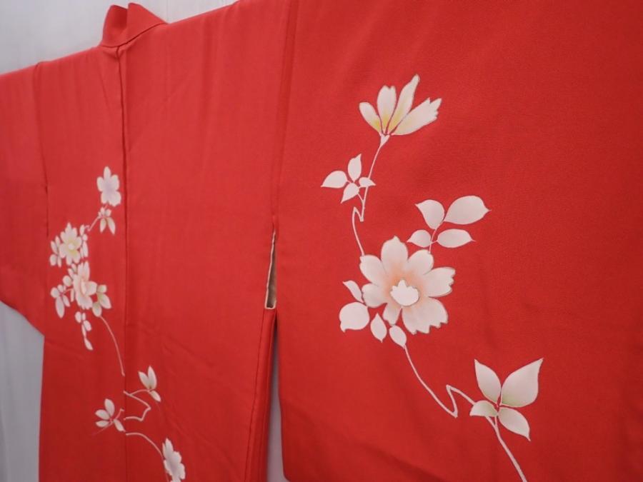 5927T05z600 Vintage Japanese Kimono Silk HAORI Flower Red