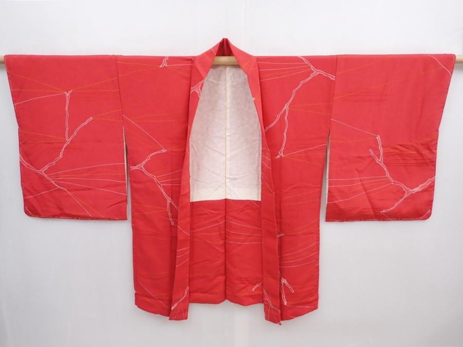 5927T07z560 Vintage Japanese Kimono Silk HAORI Red-Pink