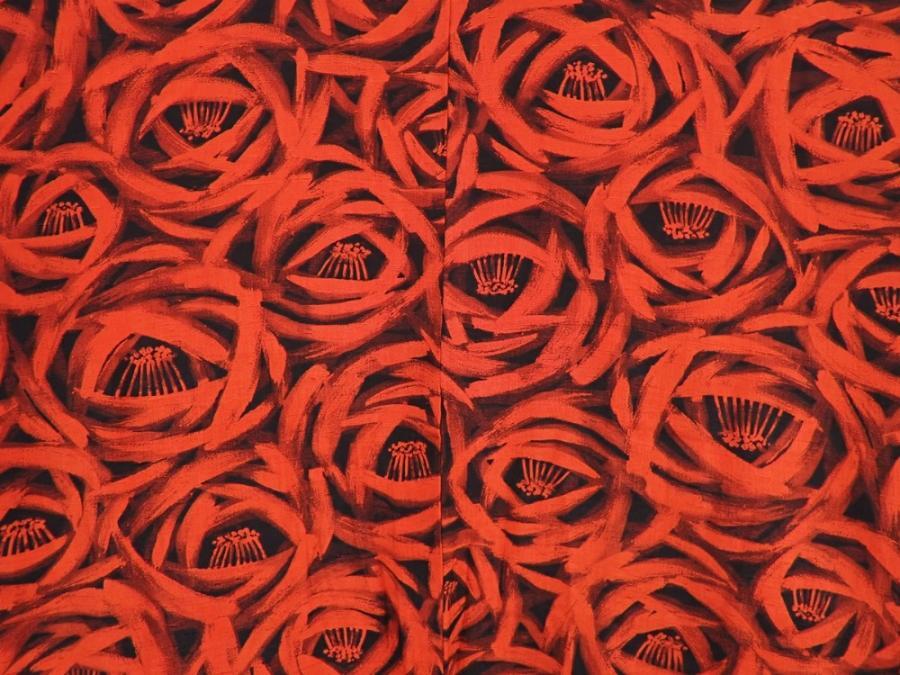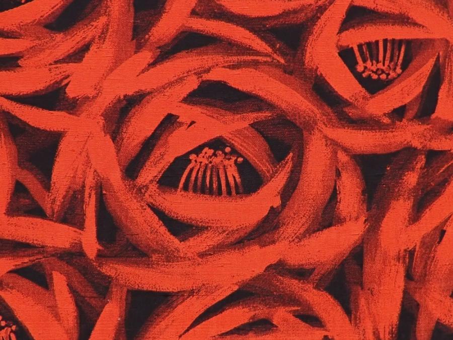 5927T09z440 Vintage Japanese Kimono Silk HAORI Flower Tomato red
