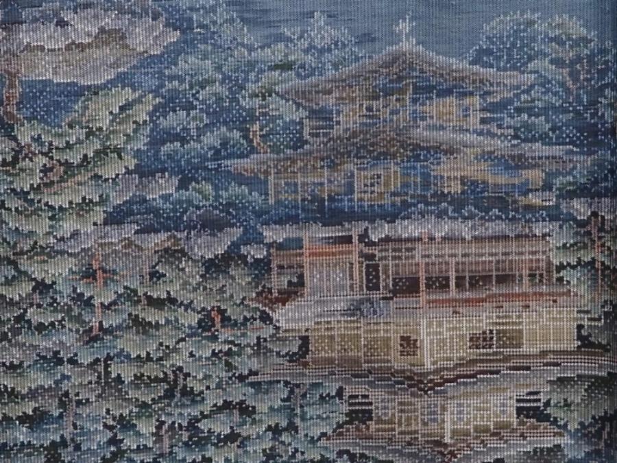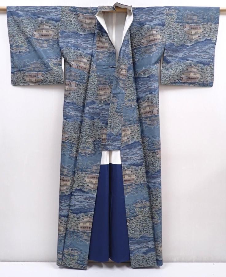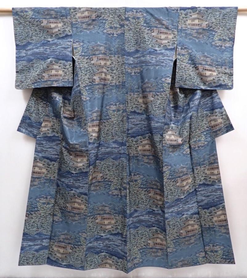 5927T12z740 Japanese Kimono Silk OSHIMA TSUMUGI Kinkaku-ji Temple