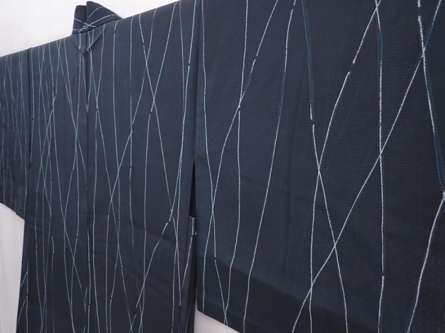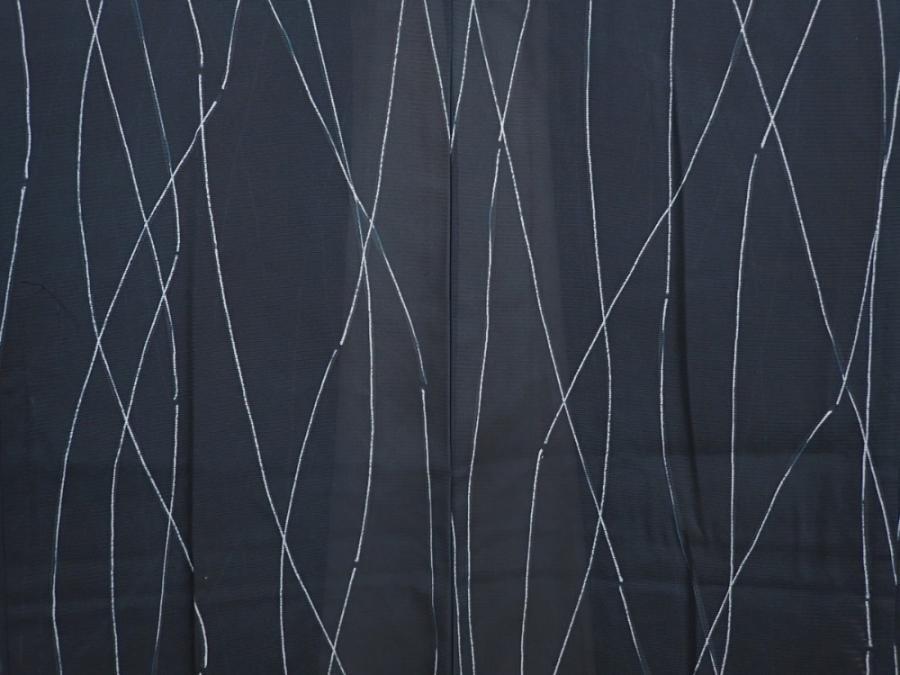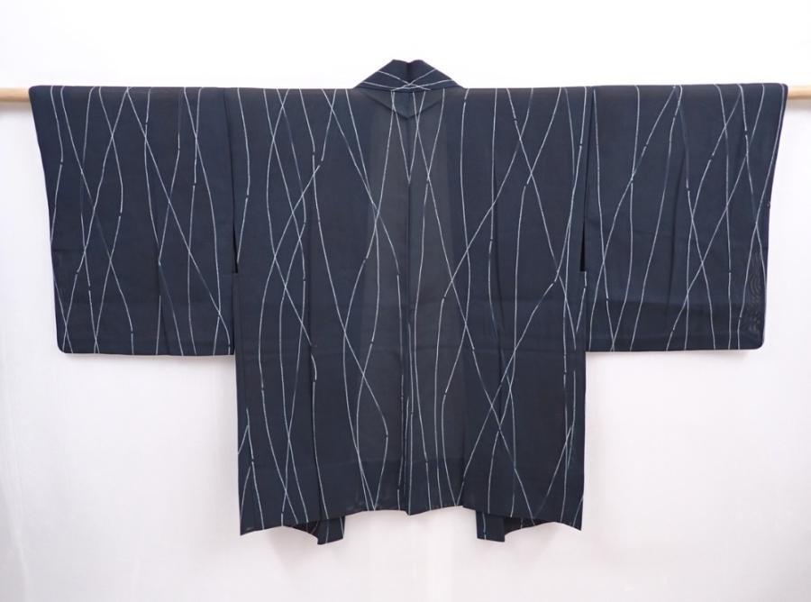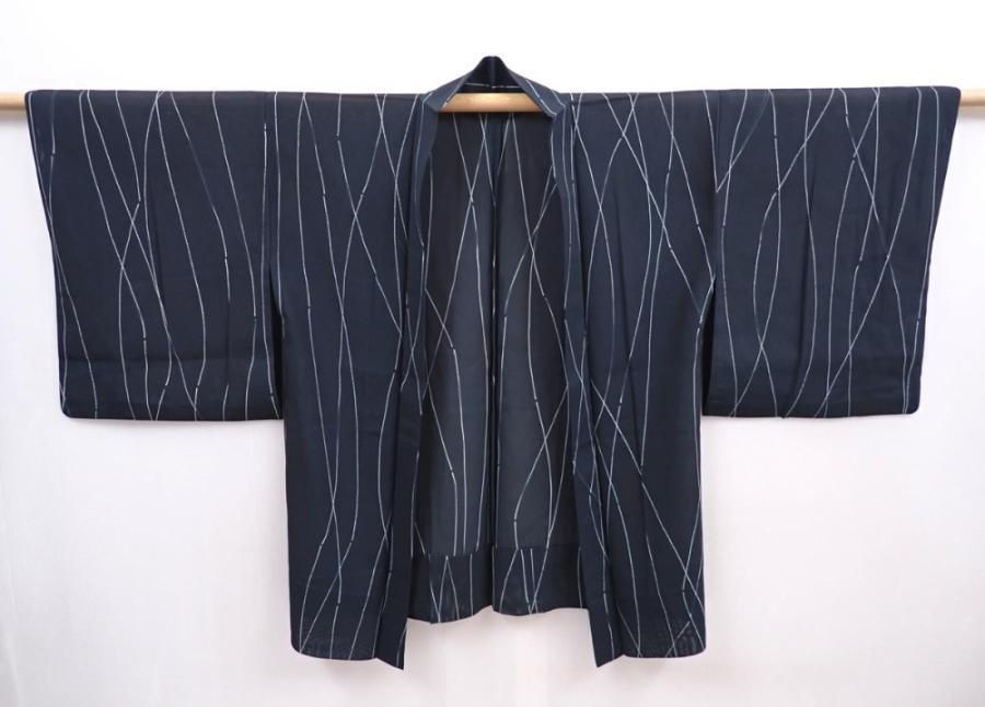 6001T01z310 Vintage Japanese Kimono Silk See through HAORI Dark green-gray