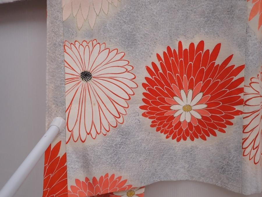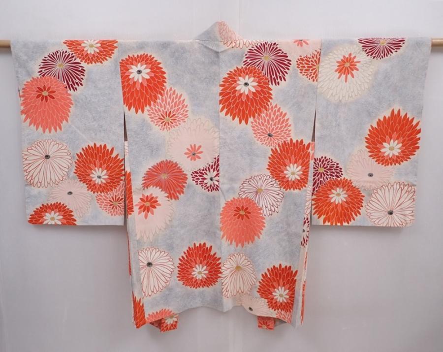 6001T04z750 Vintage Japanese Kimono Silk HAORI Chrysanthemum Light gray
