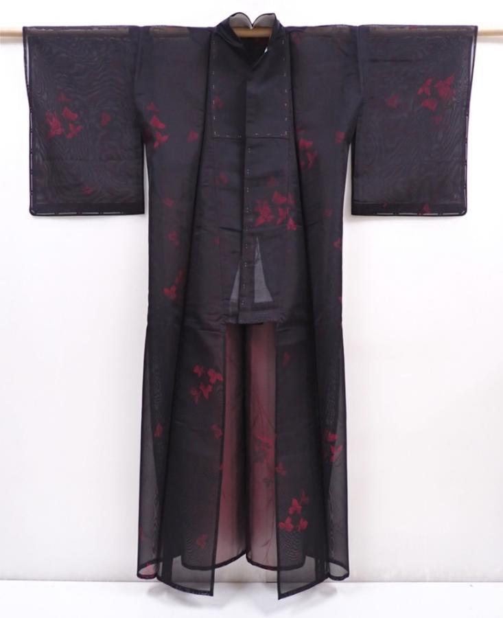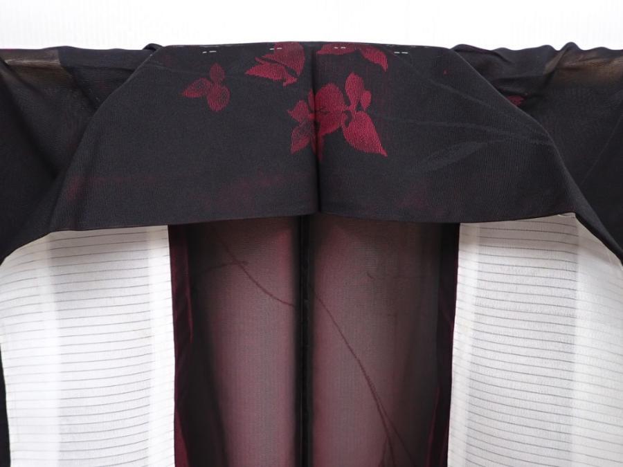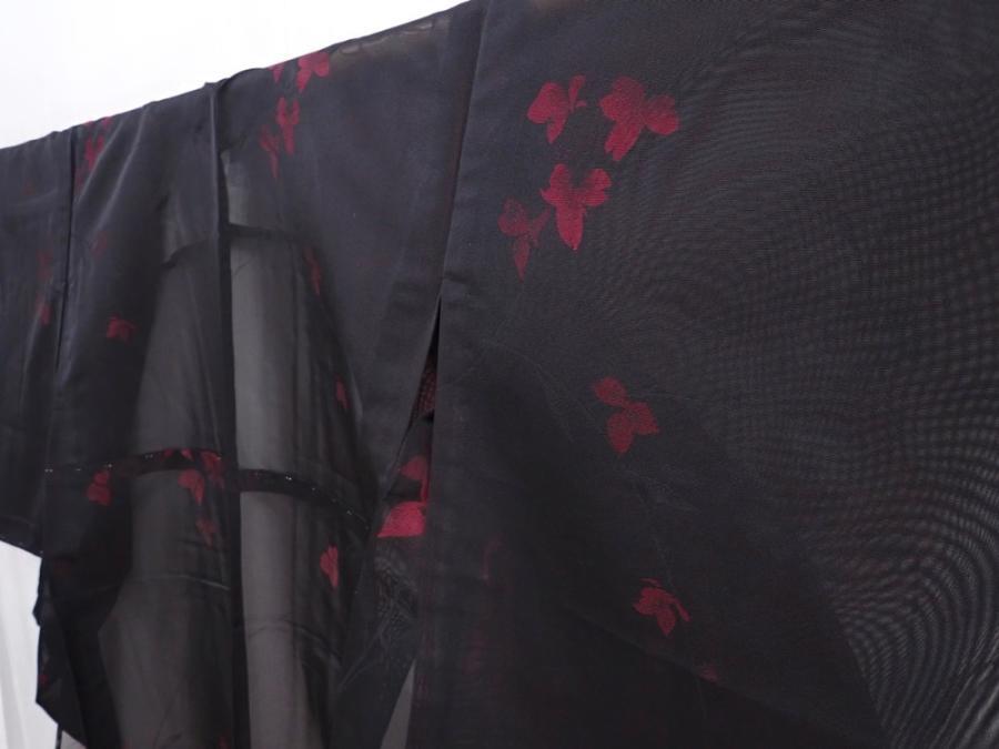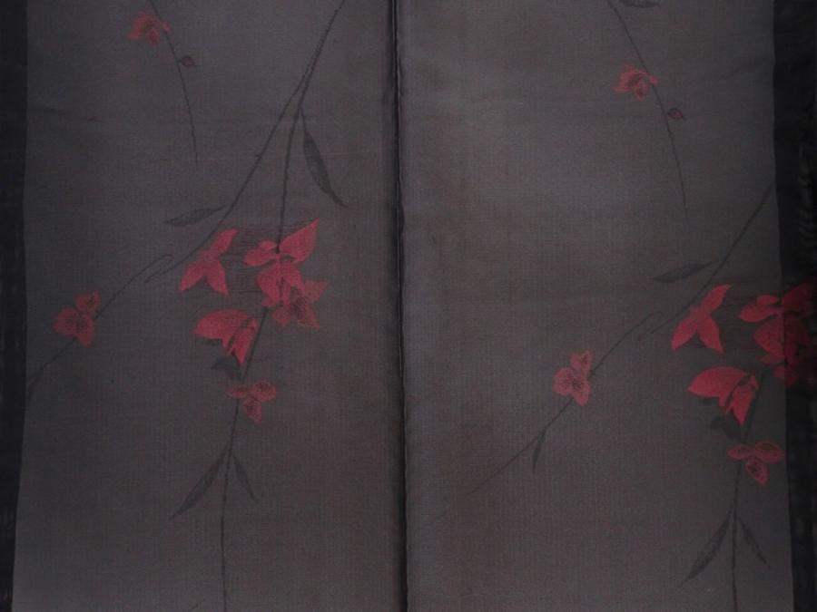 6001T07z370 Vintage Japanese Kimono Silk KOMON Flower Black
