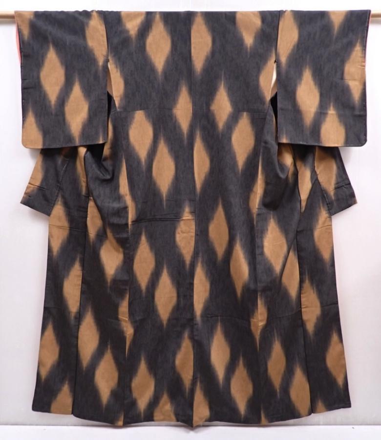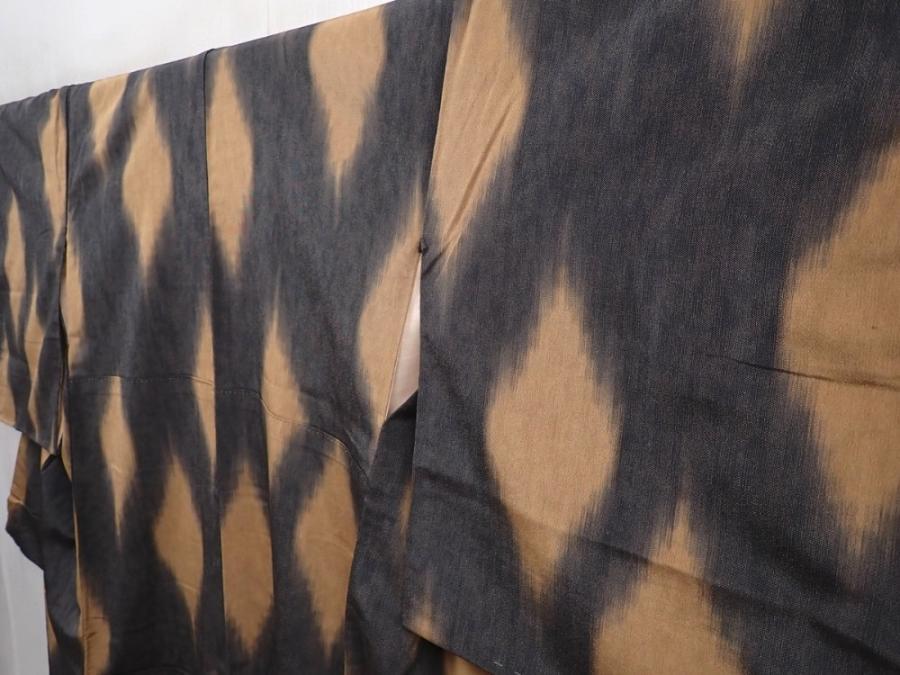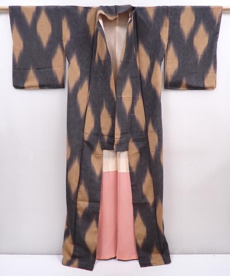 6001T11z870 Vintage Japanese Kimono Silk OMESHI KOMON Dark gray