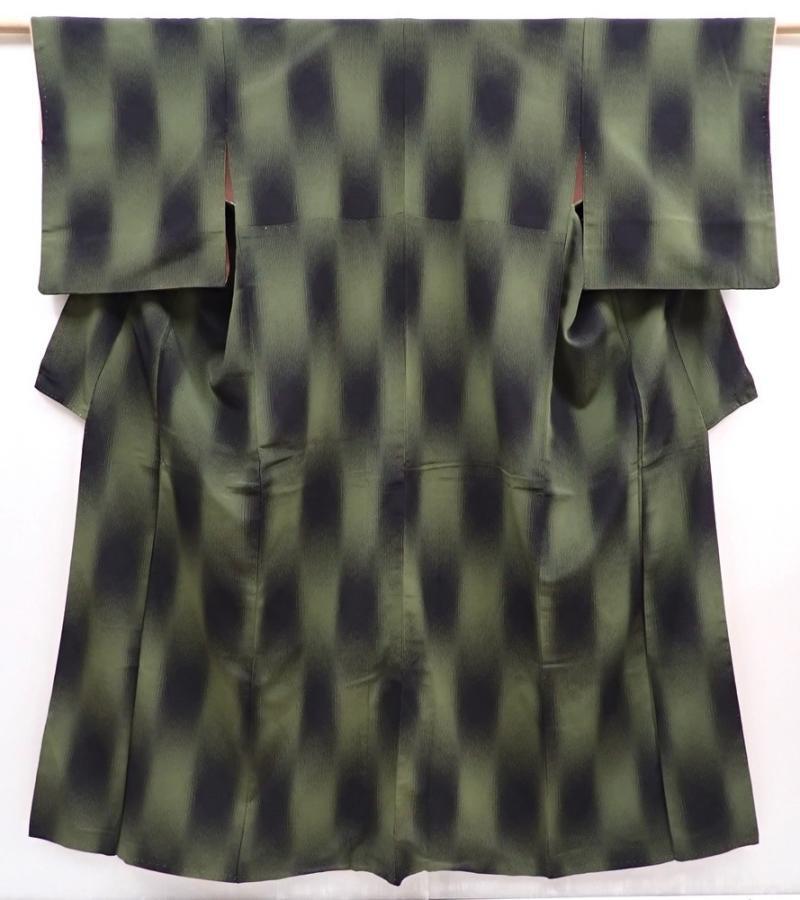 6001T12z910 Vintage Japanese Kimono Silk OMESHI KOMON Grass green