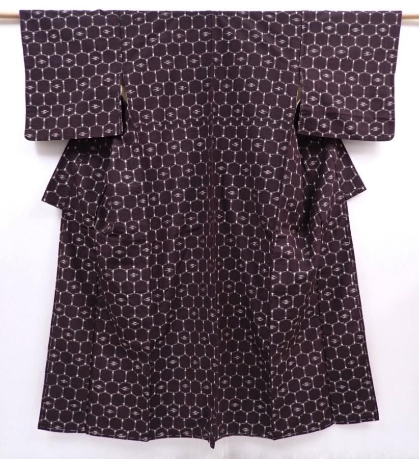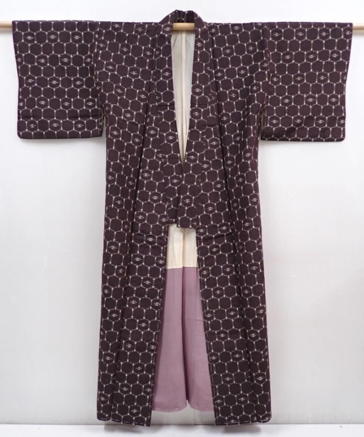6001T14z760 Vintage Japanese Kimono Silk TSUMUGI Dark brown