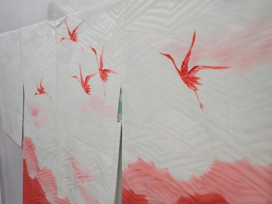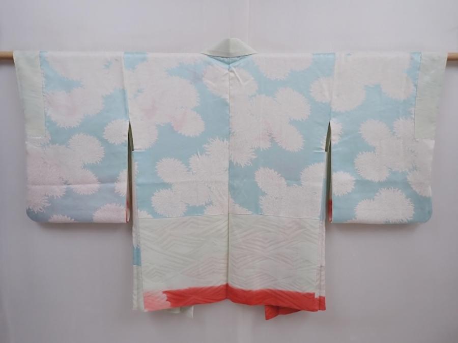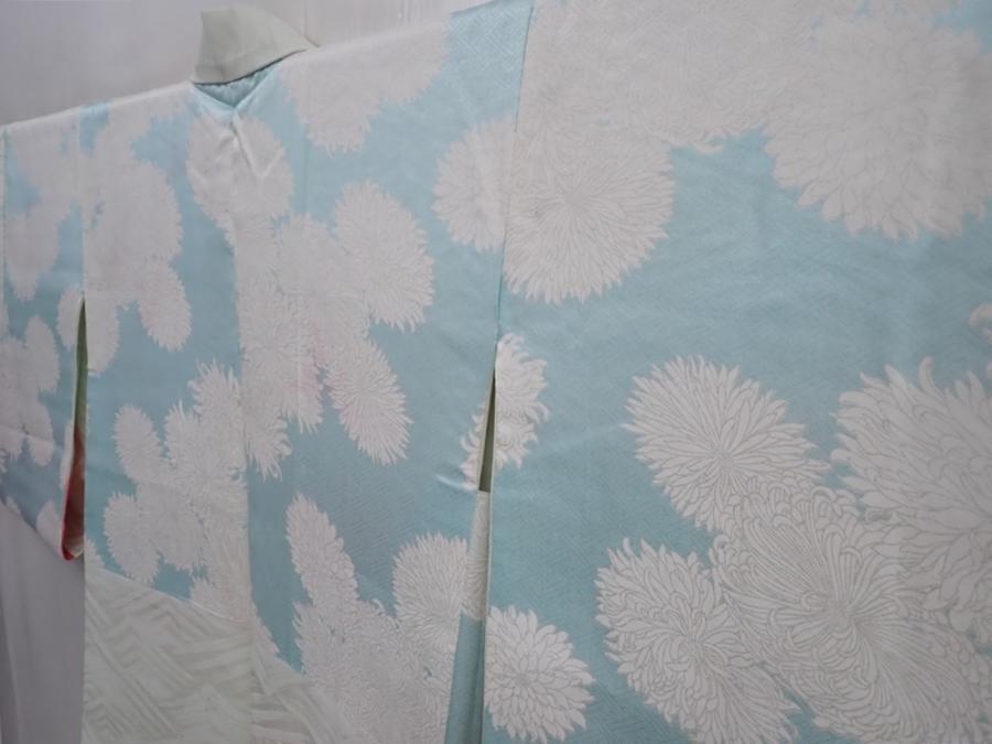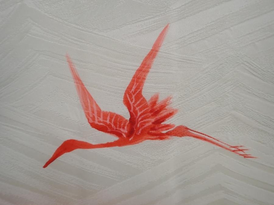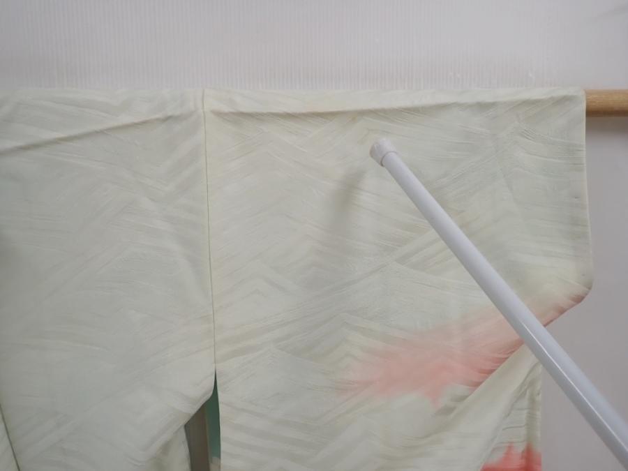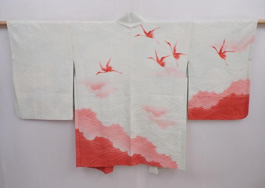 6002T04z590 Vintage Japanese Kimono Silk HAORI Flying crane Soft green
