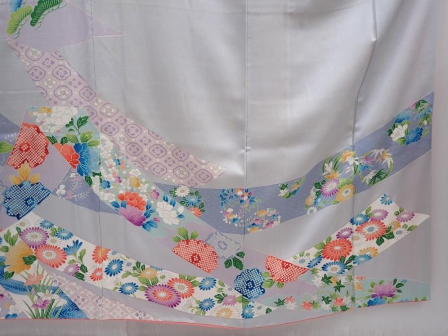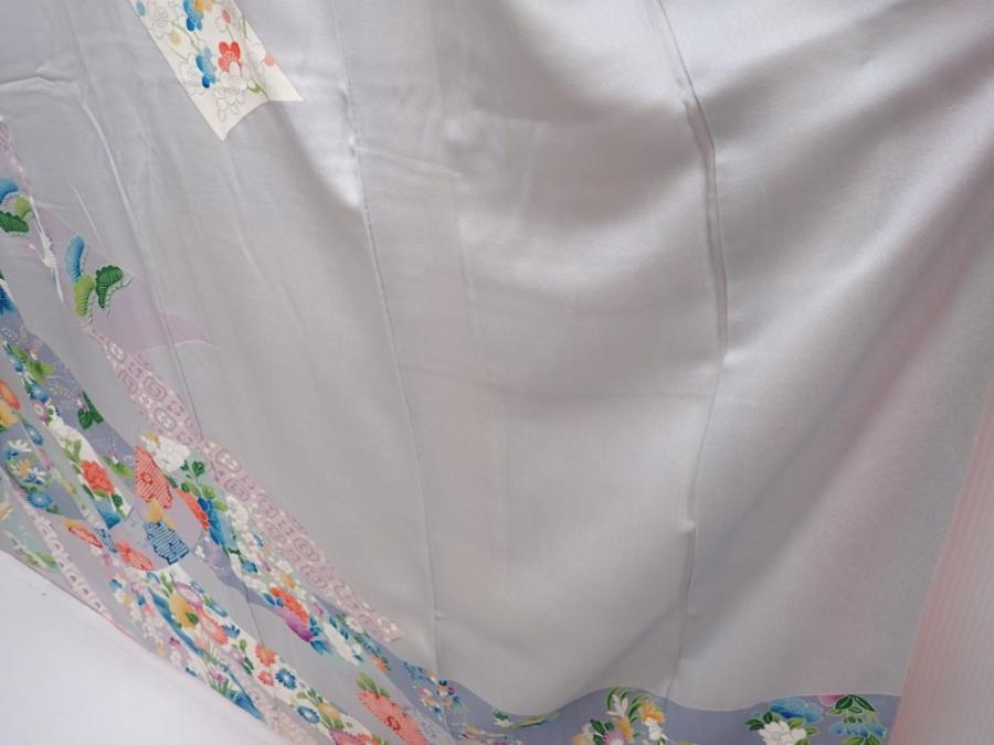 6002T12z1060 Japanese Kimono Silk FURISODE Tabane-noshi Light gray