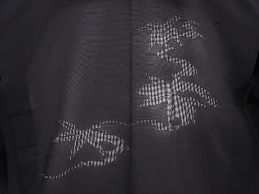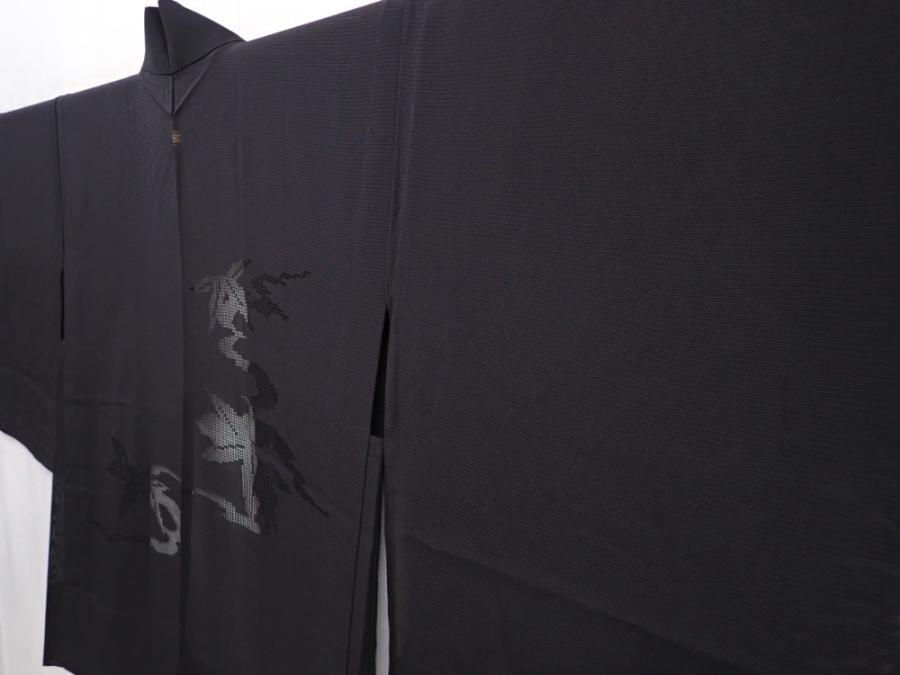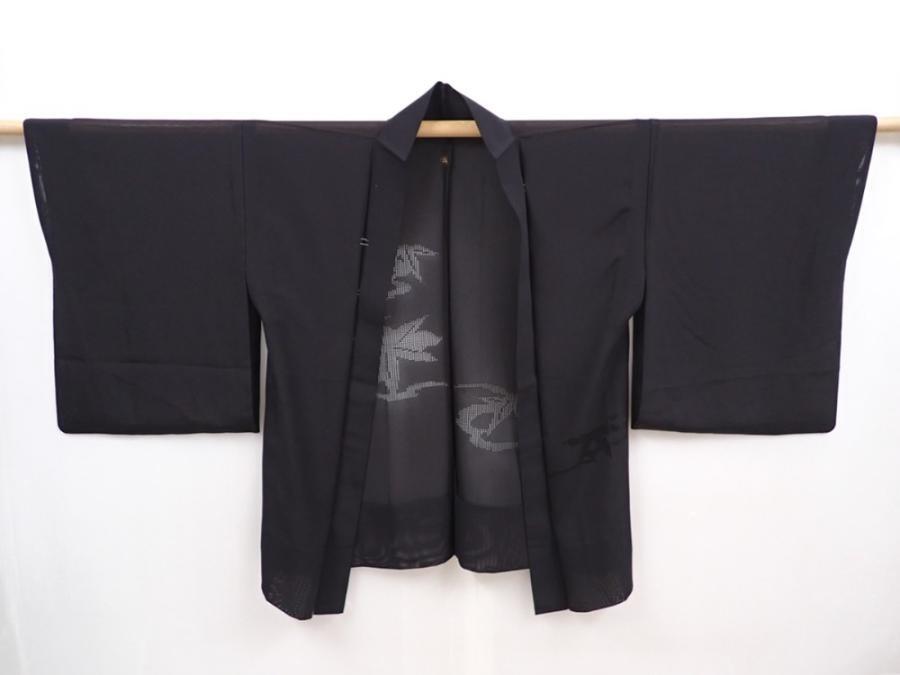 6004T01z290 Vintage Japanese Kimono Silk See through HAORI Maple Black