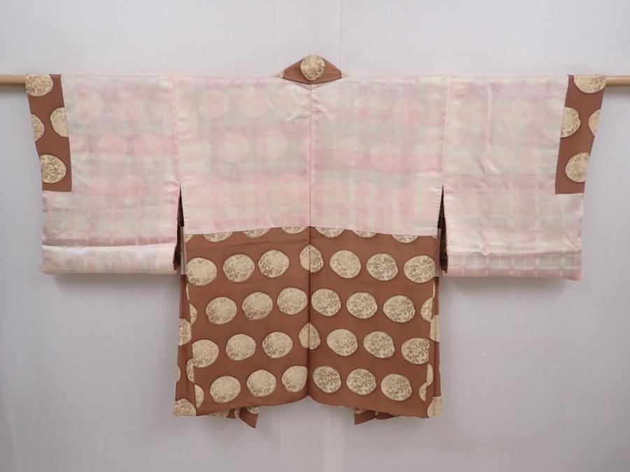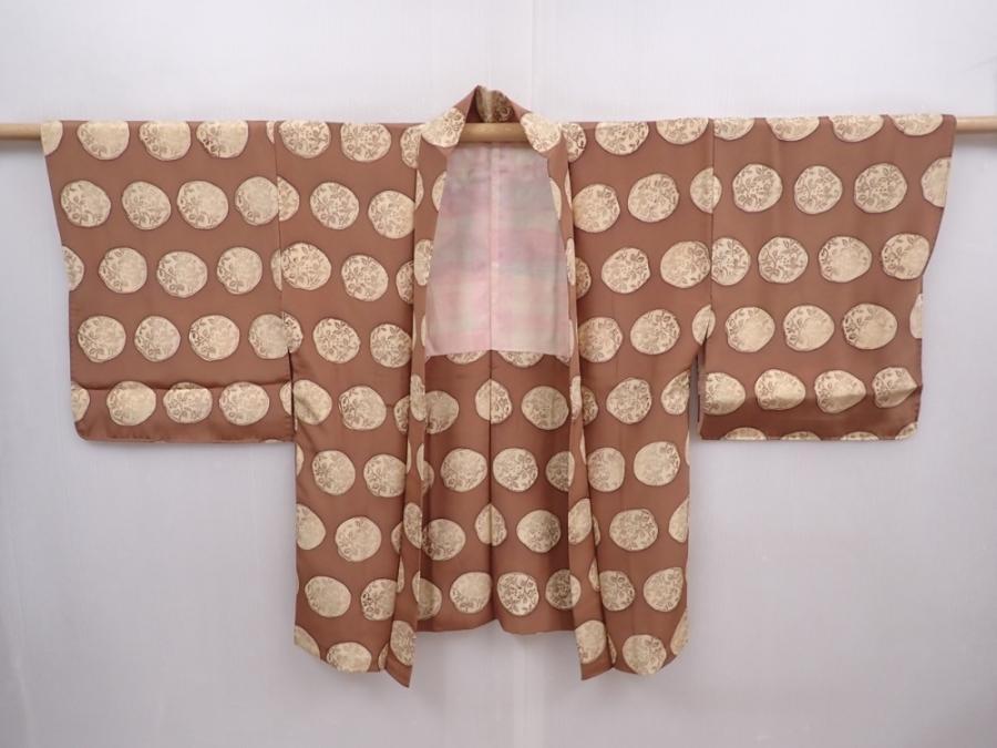 6004T02z570 Vintage Japanese Kimono Silk HAORI Light brown