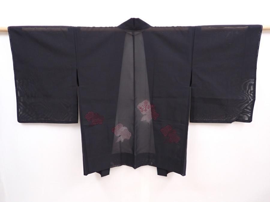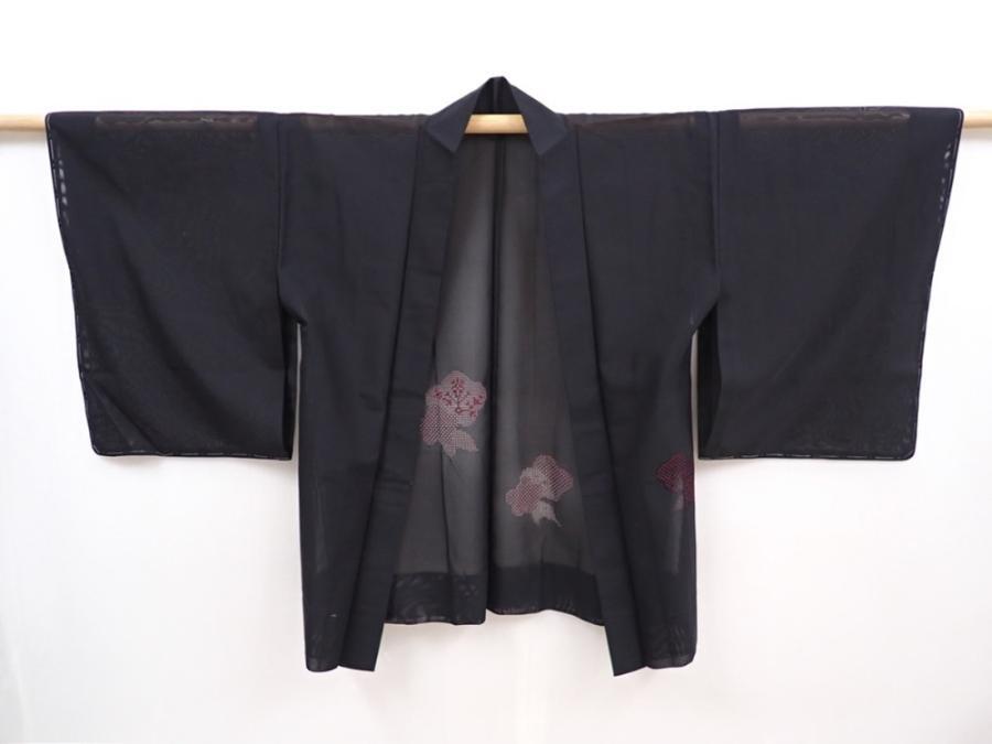 6004T03z310 Vintage Japanese Kimono Silk See through HAORI Black