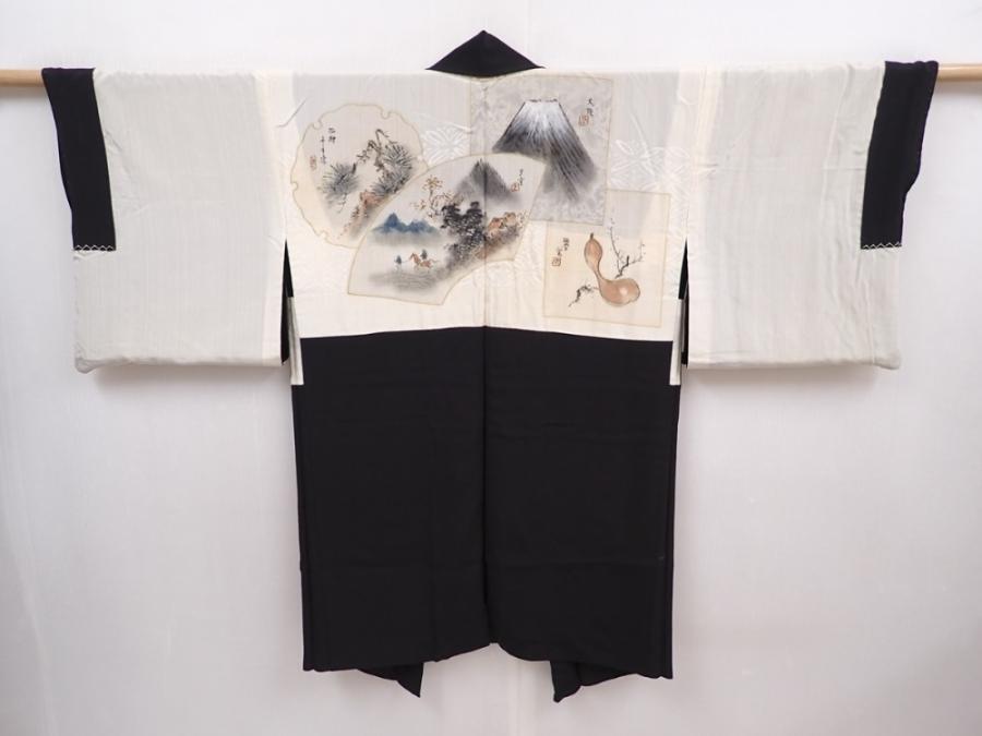 6004T05z560 Vintage Japanese Kimono Silk HAORI Black