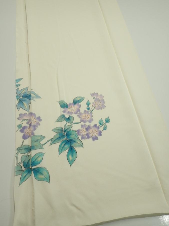 2L03z90 Japanese Kimono Silk FABRIC Flower Off-white 68.9x14.4