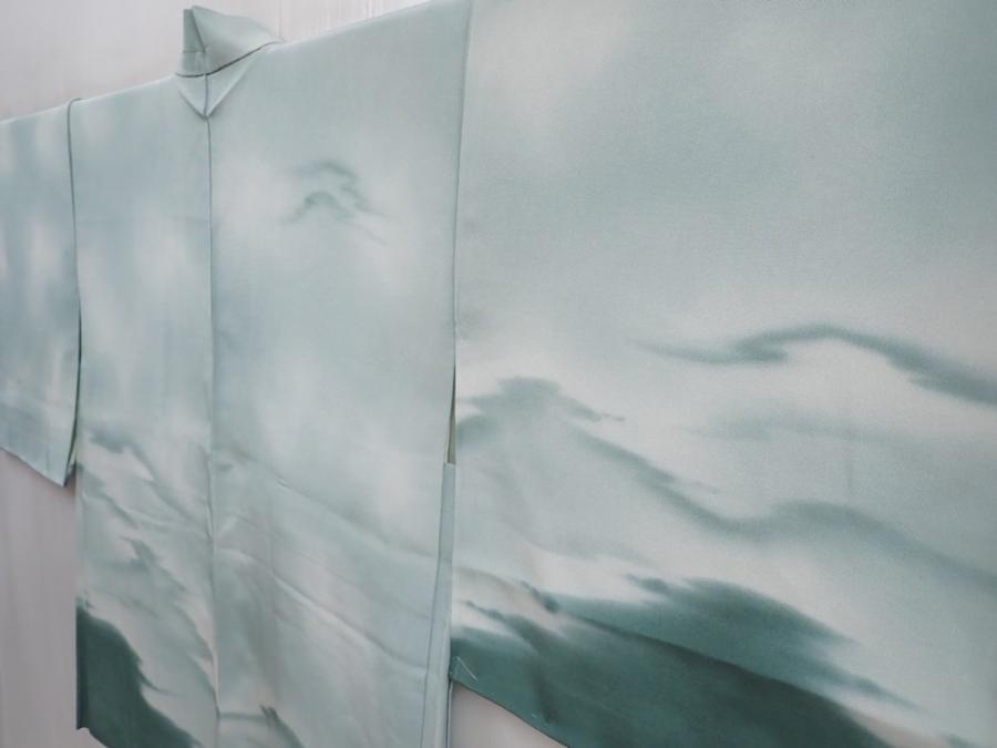 6008T01z600 Vintage Japanese Kimono Silk HAORI Opal Green