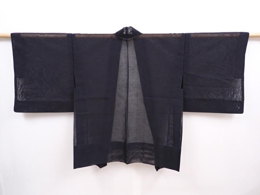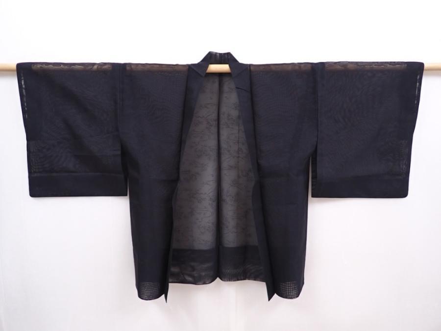 6008T04z180 Vintage Japanese Kimono Silk See through HAORI Trees Black