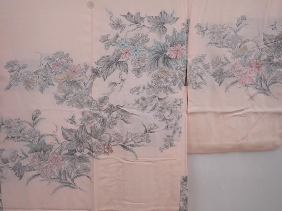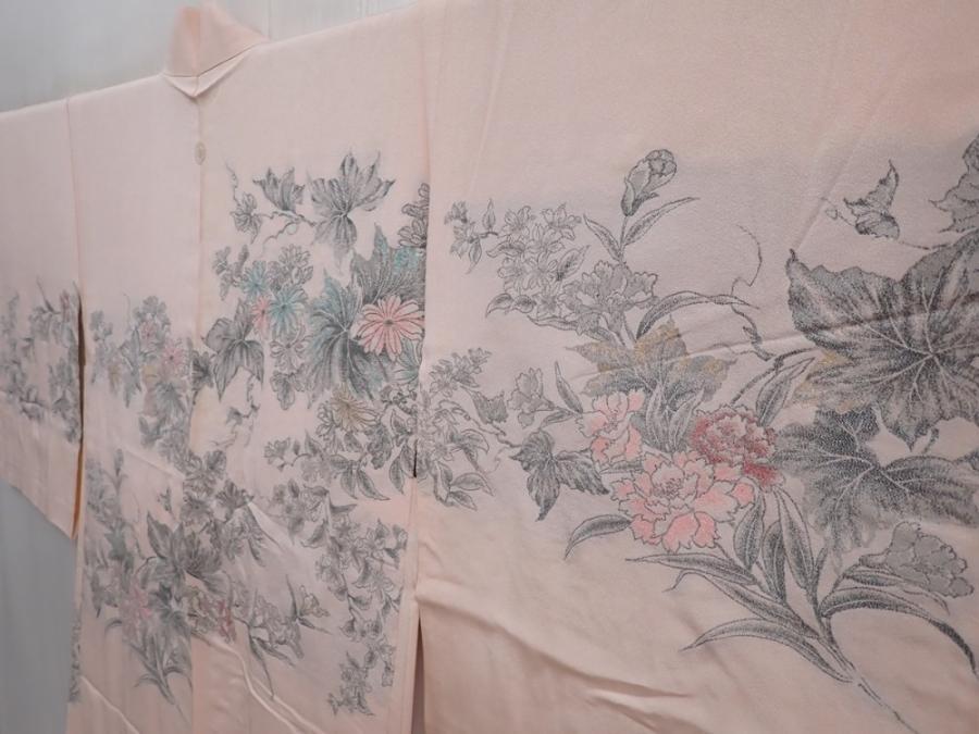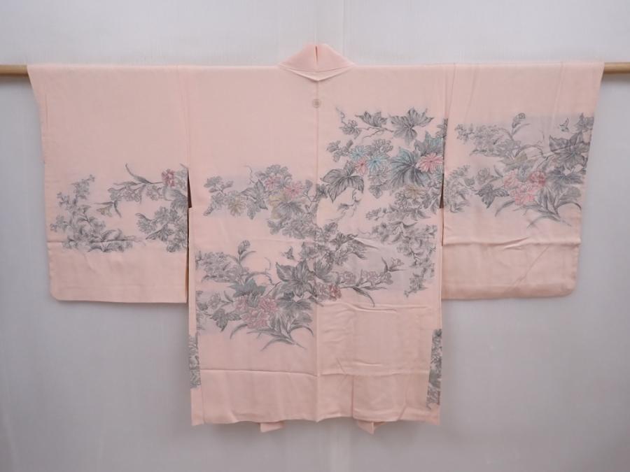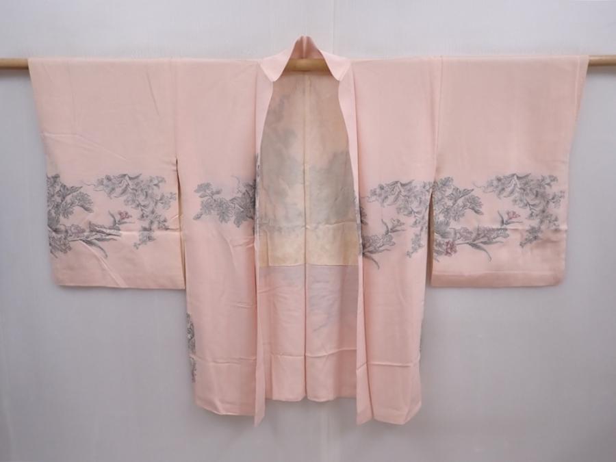 6008T05z560 Vintage Japanese Kimono Silk HAORI Peony Pink