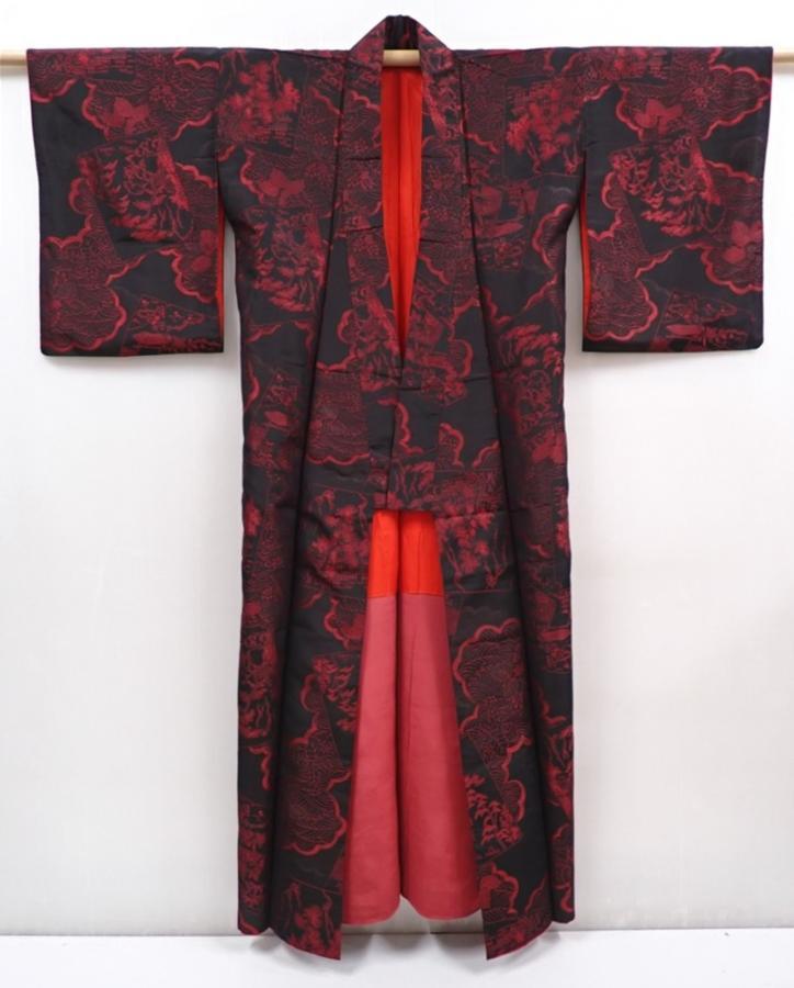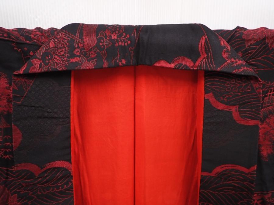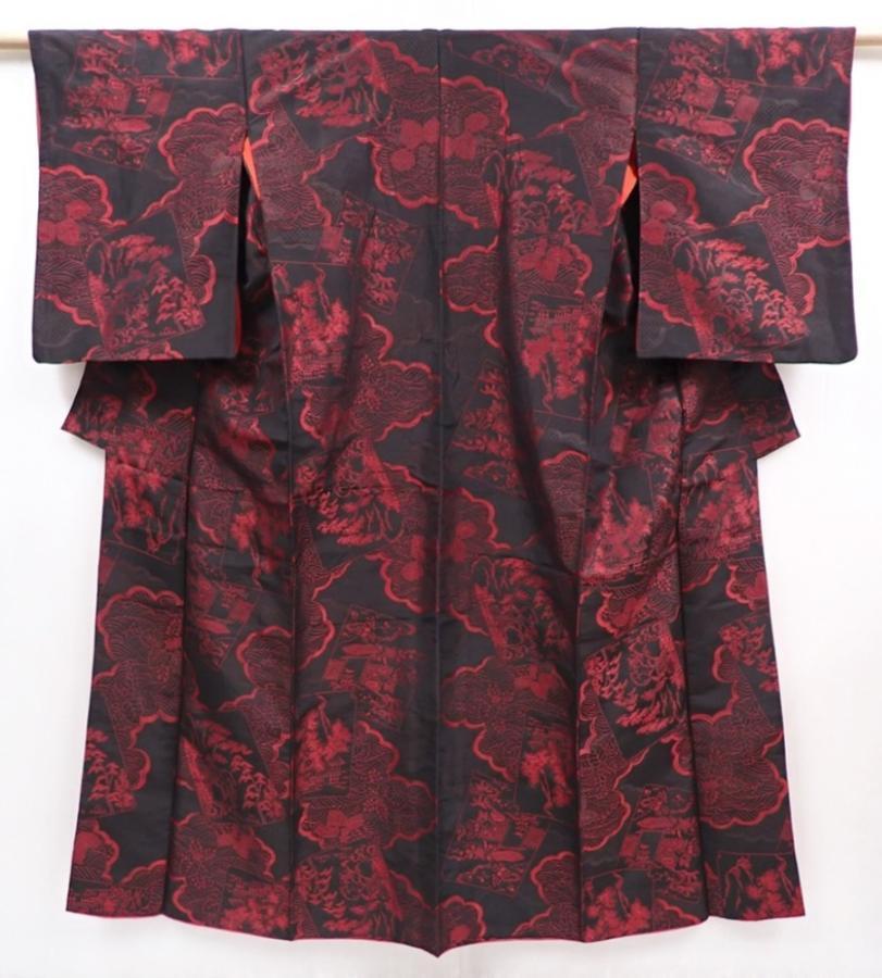 6008T11z660 Vintage Japanese Kimono Silk OMESHI KOMON Black