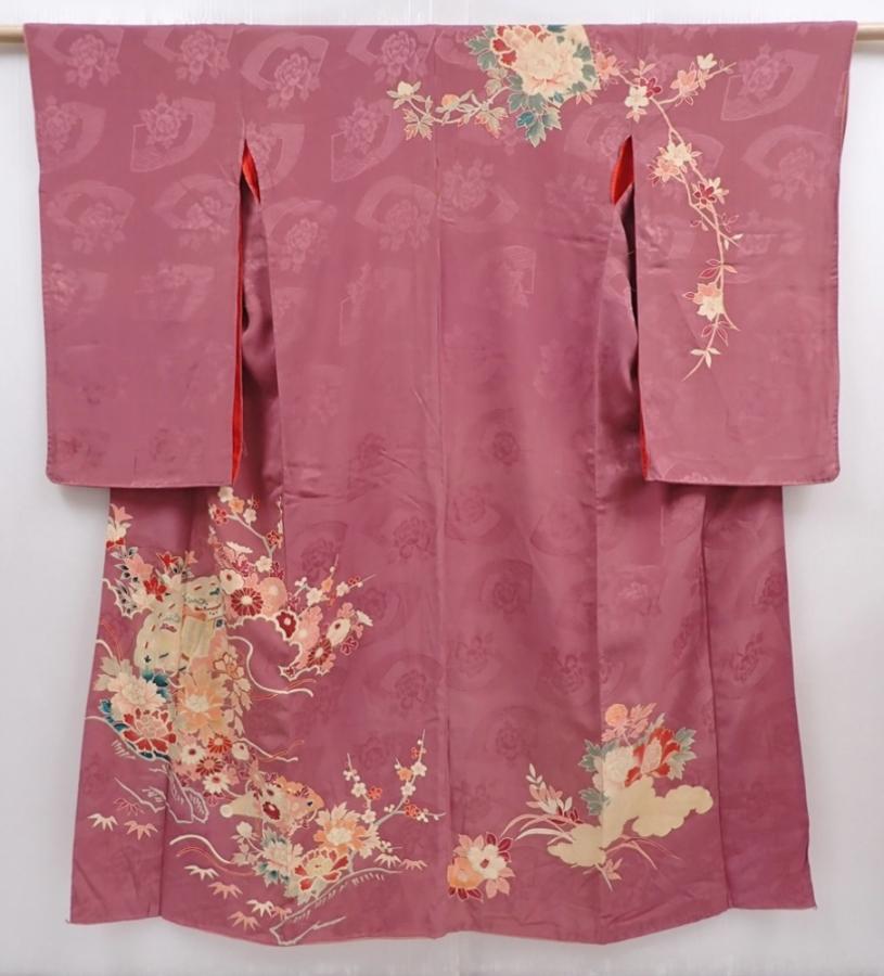 6008T12z610 Antique Japanese Kimono Silk TSUKESAGE Peony Dark pink