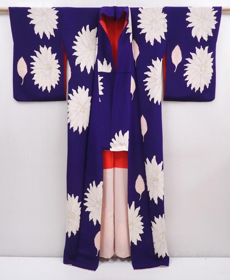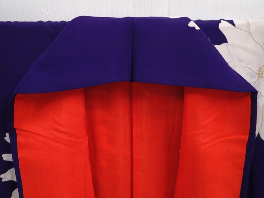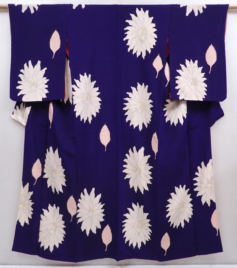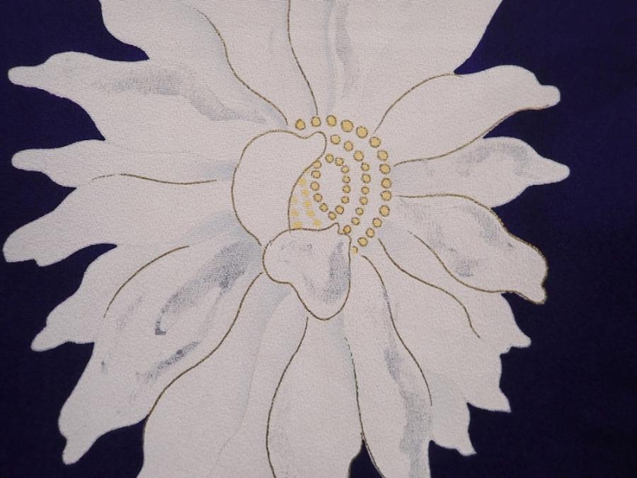 6008T14z940 Vintage Japanese Kimono Silk KOMON Flower Dark lavender