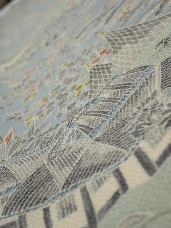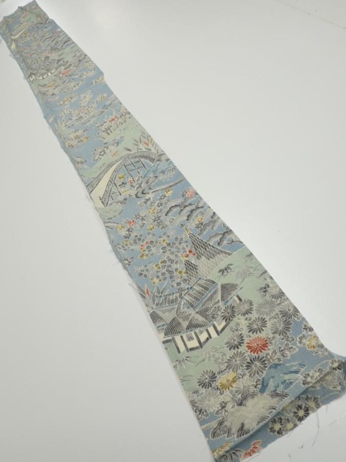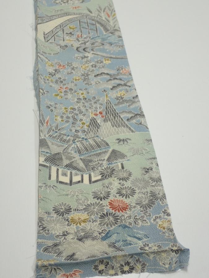 2L07z50 Japanese Kimono Crepe Silk FABRIC Scenery Dull light blue 61.4x6.9