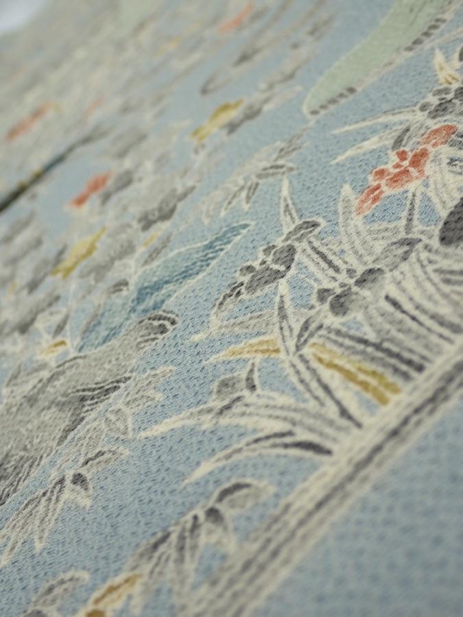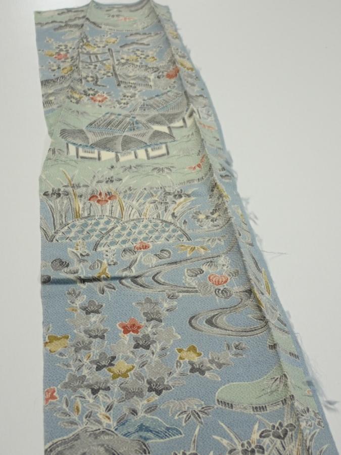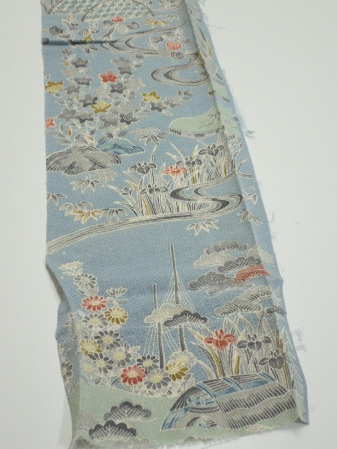 2L08z30 Japanese Kimono Crepe Silk FABRIC Scenery Dull light blue 33.5x6.9