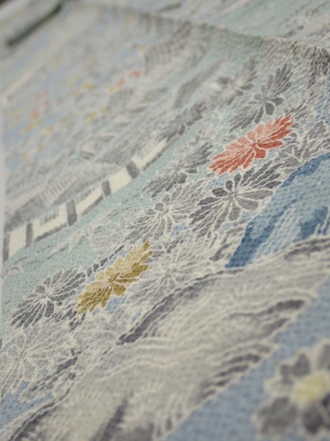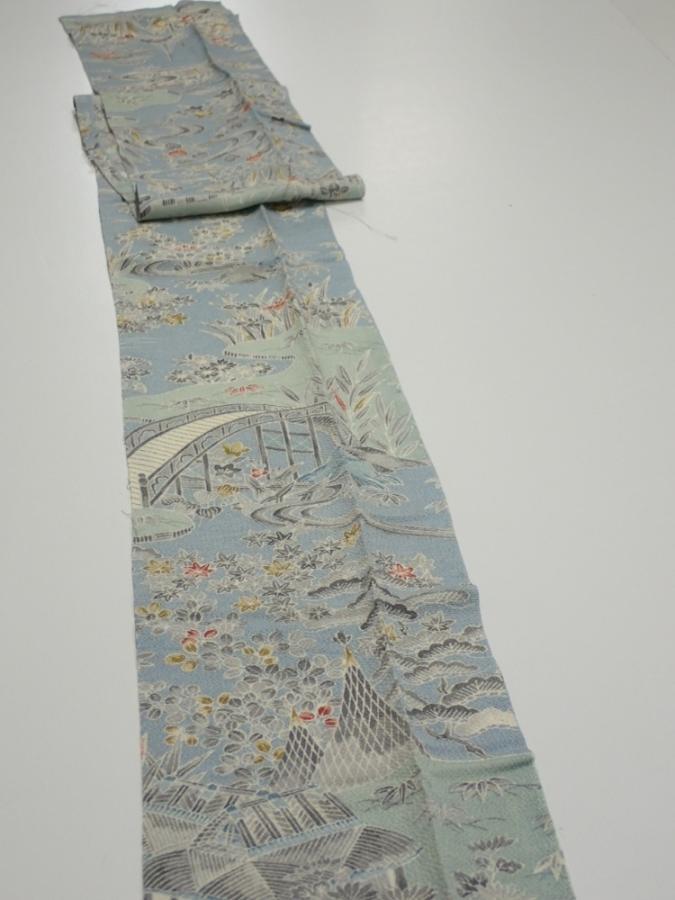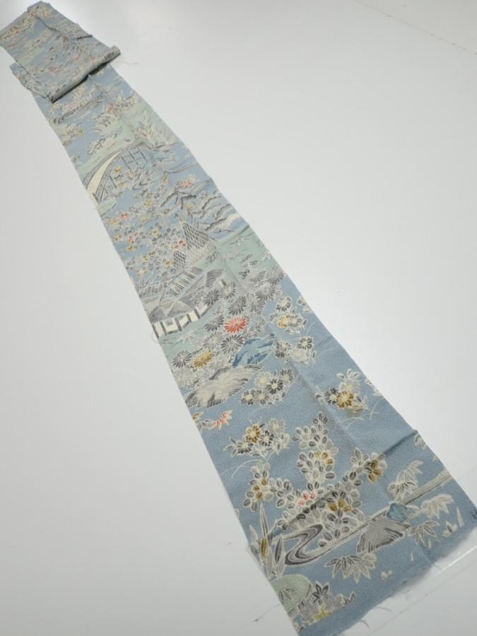 2L09z60 Japanese Kimono Crepe Silk FABRIC Scenery Dull light blue 81.9x6.9