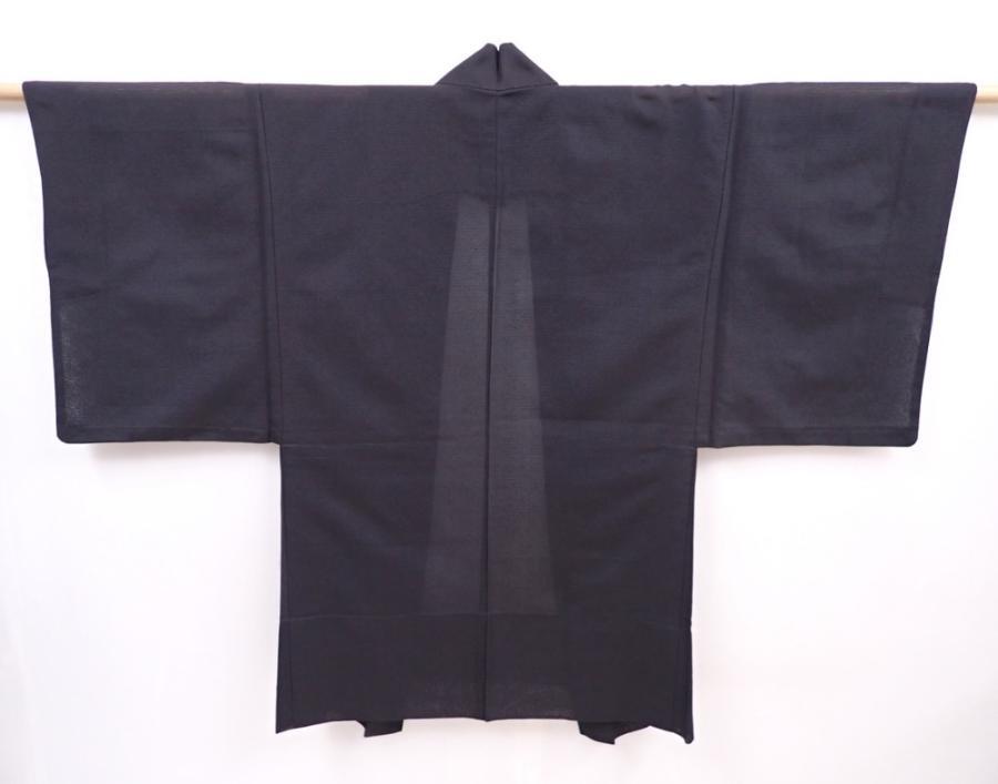 6009T01z270 Vintage Japanese Kimono Silk Men's HAORI Plain Black