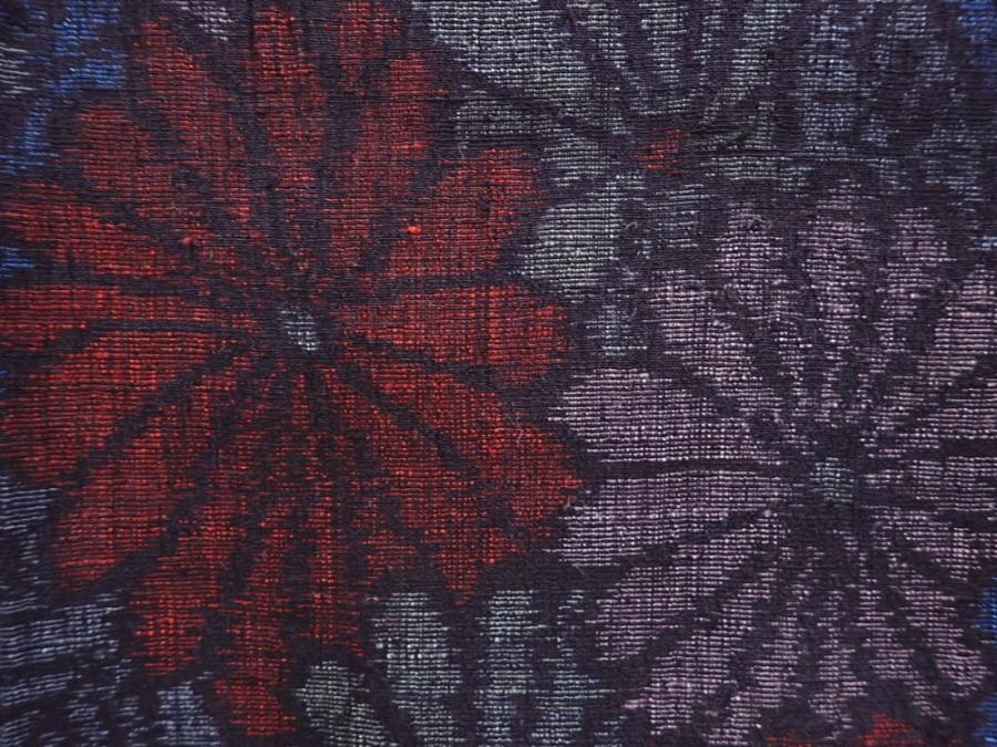 6009T09z830 Vintage Japanese Kimono Silk TSUMUGI Chrysanthemum Dark blue