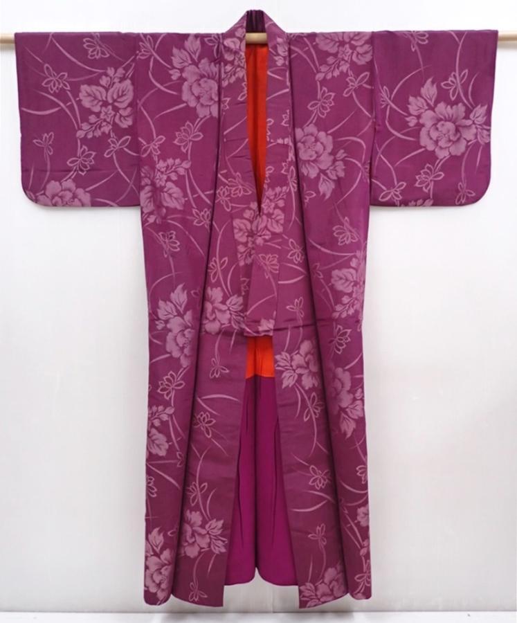 6009T10z570 Antique Japanese Kimono Silk TSUMUGI Peony Dull purple