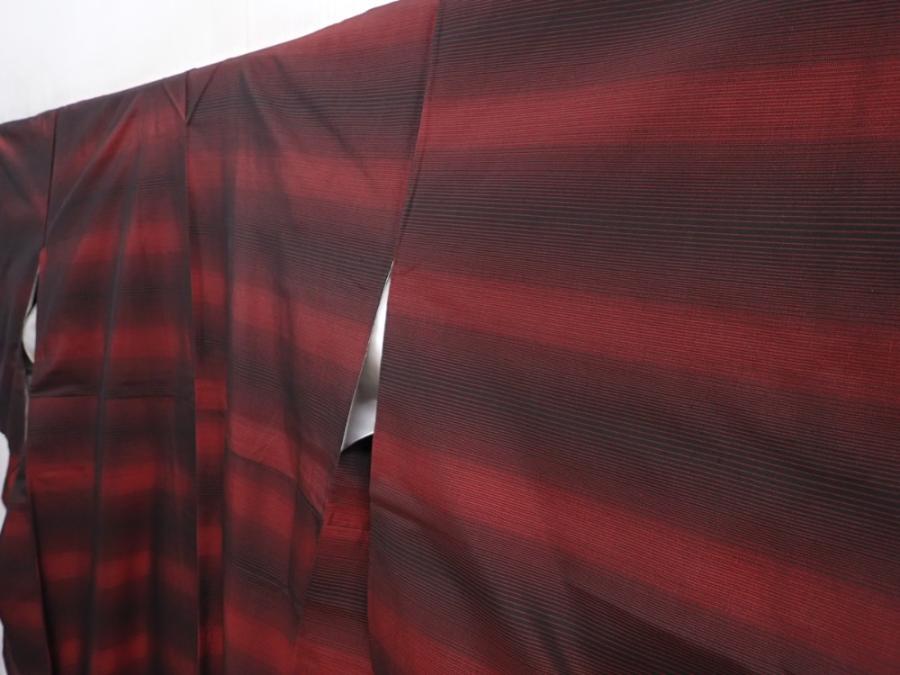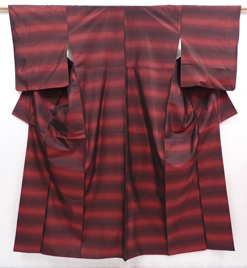 6009T11z650 Vintage Japanese Kimono Silk TSUMUGI Dark red