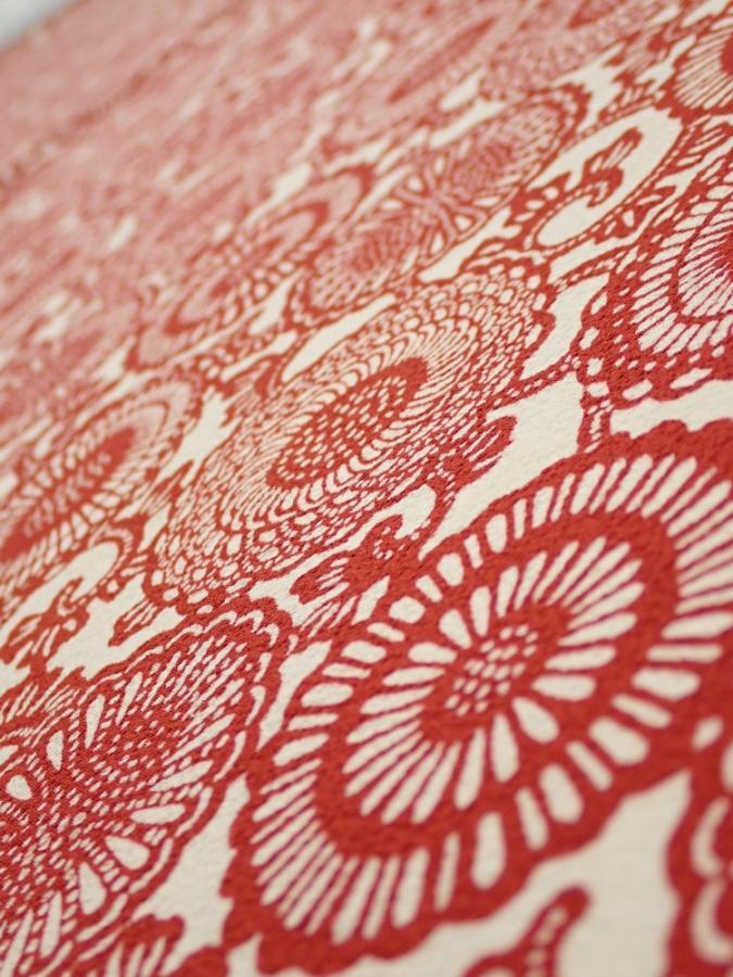 3Q01z70 Japanese Kimono Silk FABRIC Chrysanthemum Dark red 49.6x14.0