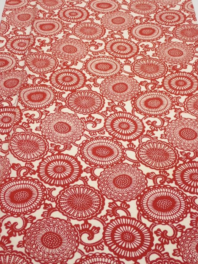 3Q06z90 Japanese Kimono Silk FABRIC Chrysanthemum Dark red 64.6x14.0