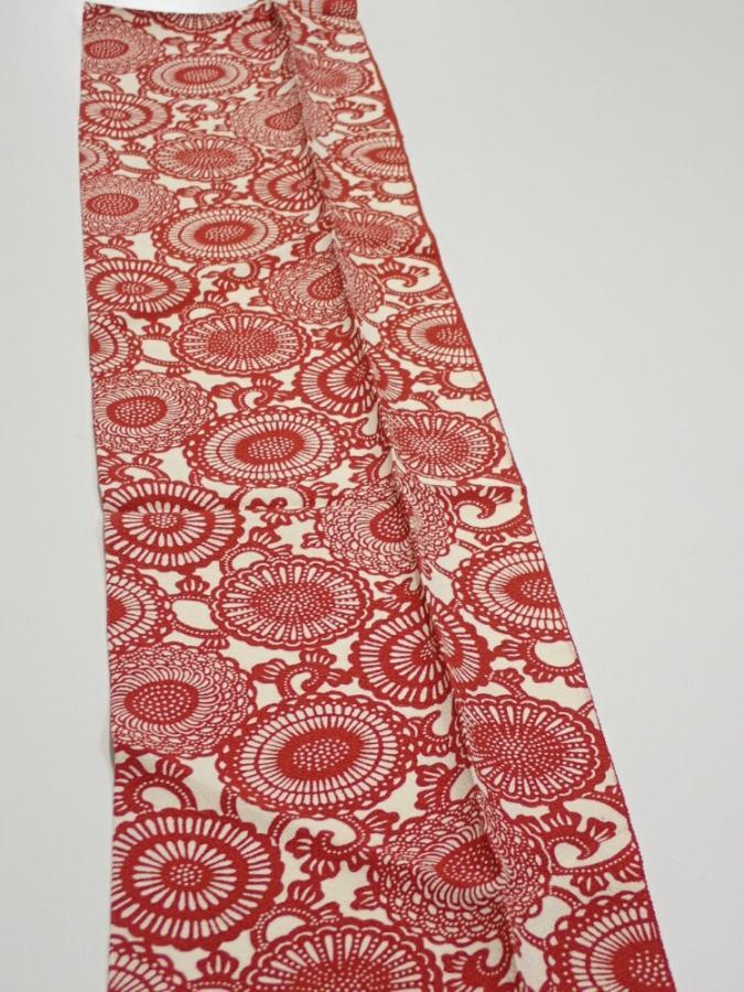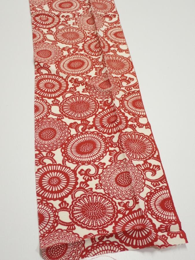 3Q10z30 Japanese Kimono Silk FABRIC Chrysanthemum Dark red 33.9x7.1