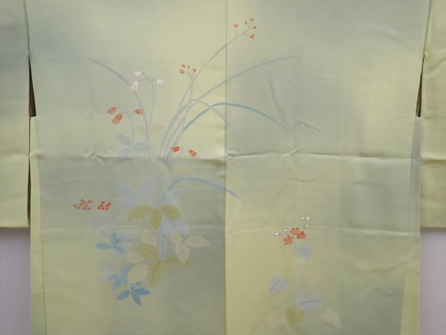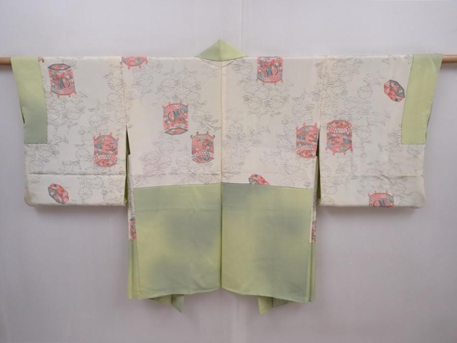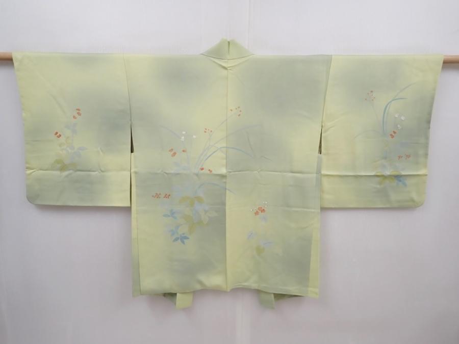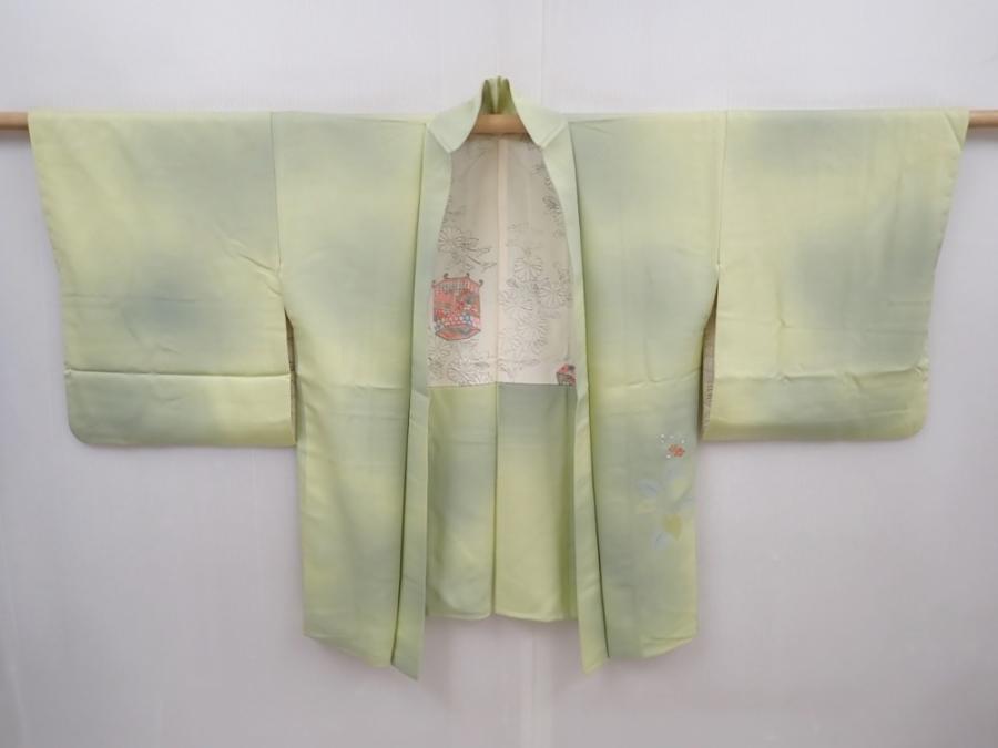 6010T03z540 Vintage Japanese Kimono Silk HAORI Flower Light olive