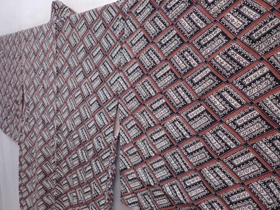 6010T07z520 Vintage Japanese Kimono Silk HAORI Black