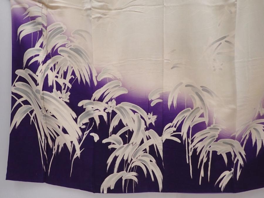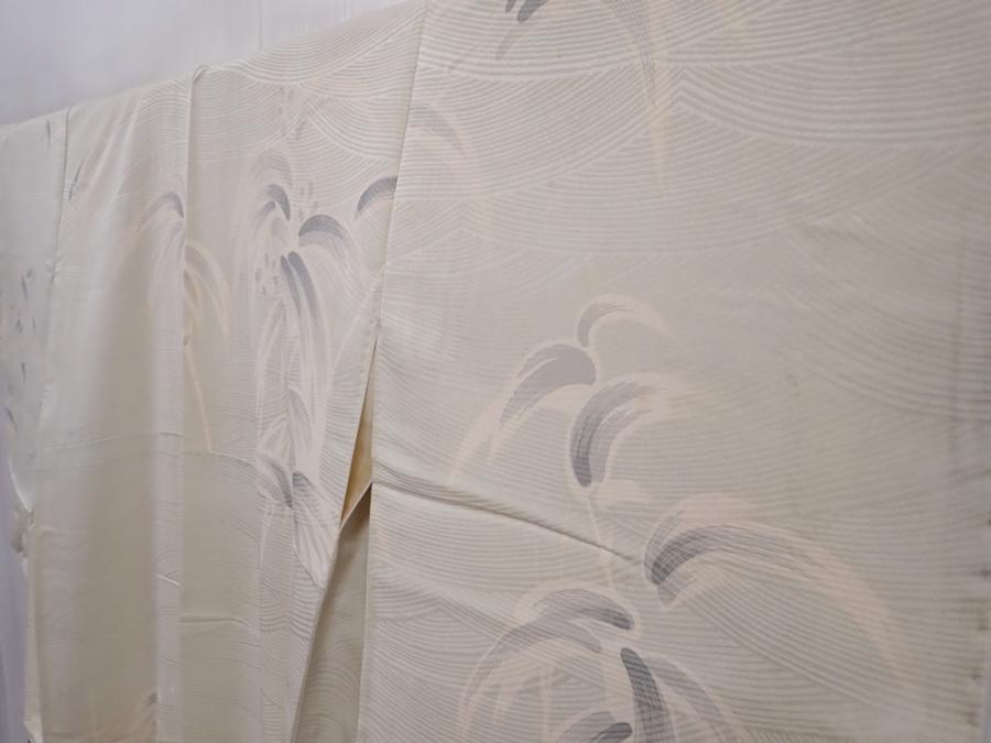 6010T08z730 Vintage Japanese Kimono Silk TSUKESAGE Flower Off-white
