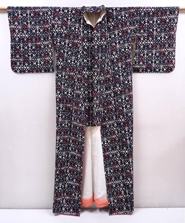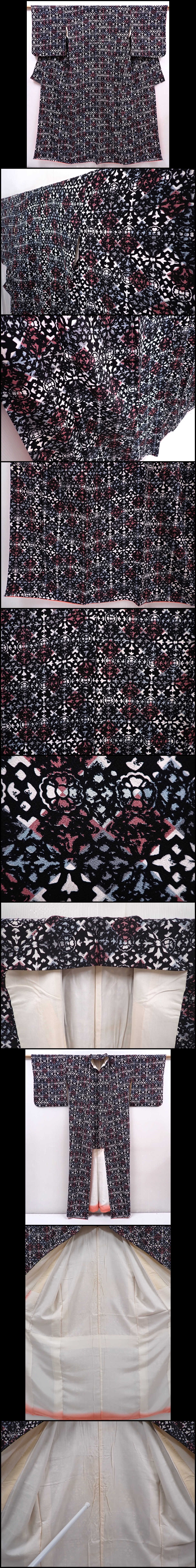 6010T12z810 Vintage Japanese Kimono Silk KOMON Black