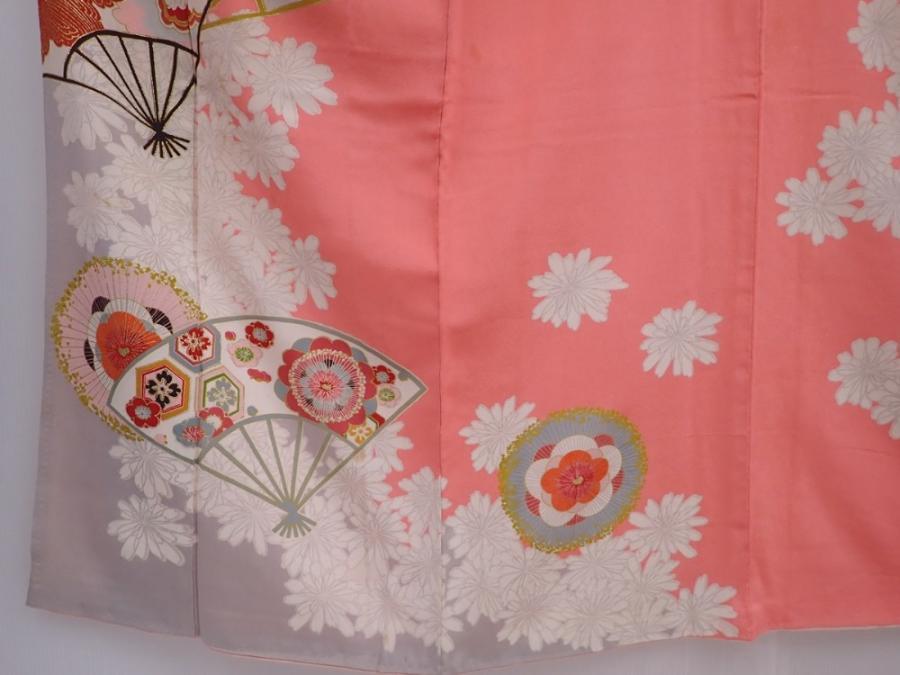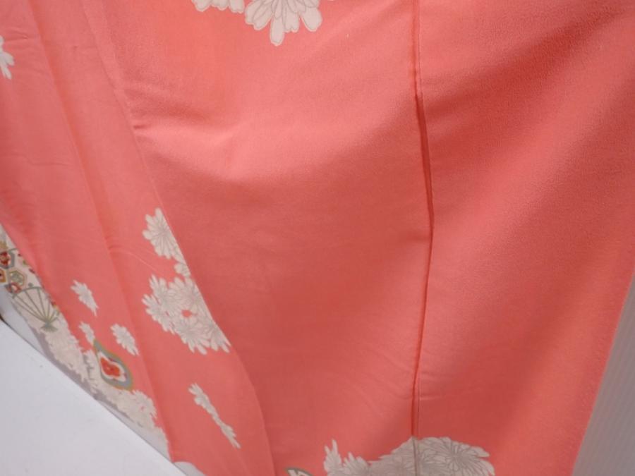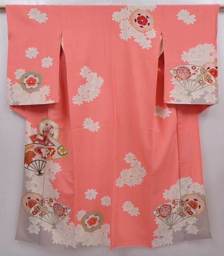 6010T13z740 Vintage Japanese Kimono Silk TSUKESAGE Folding fan Coral pink
