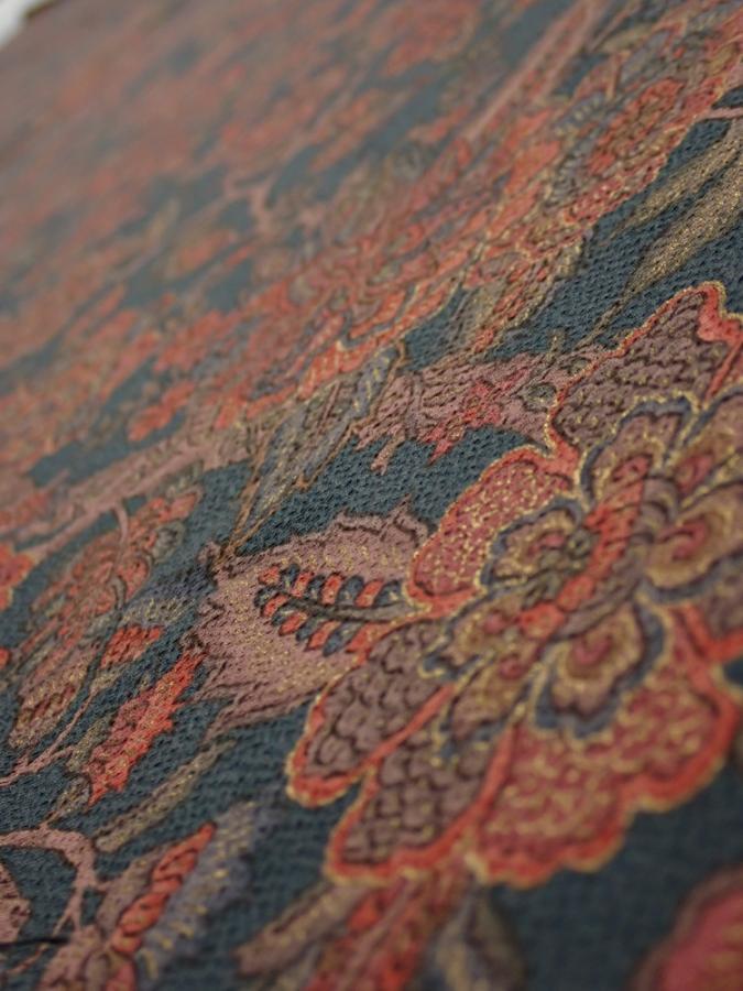 3Q08z50 Japanese Kimono Crepe Silk FABRIC Flowers Green-Gray 61.4x7.7