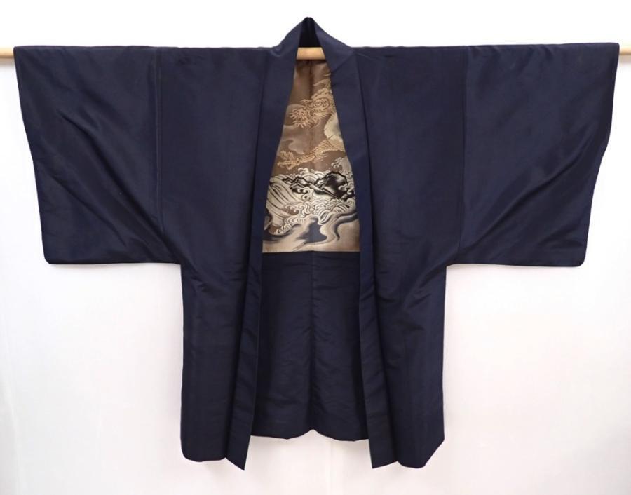 6011T01z480 Vintage Japanese Kimono Silk Men's HAORI Dragon Black