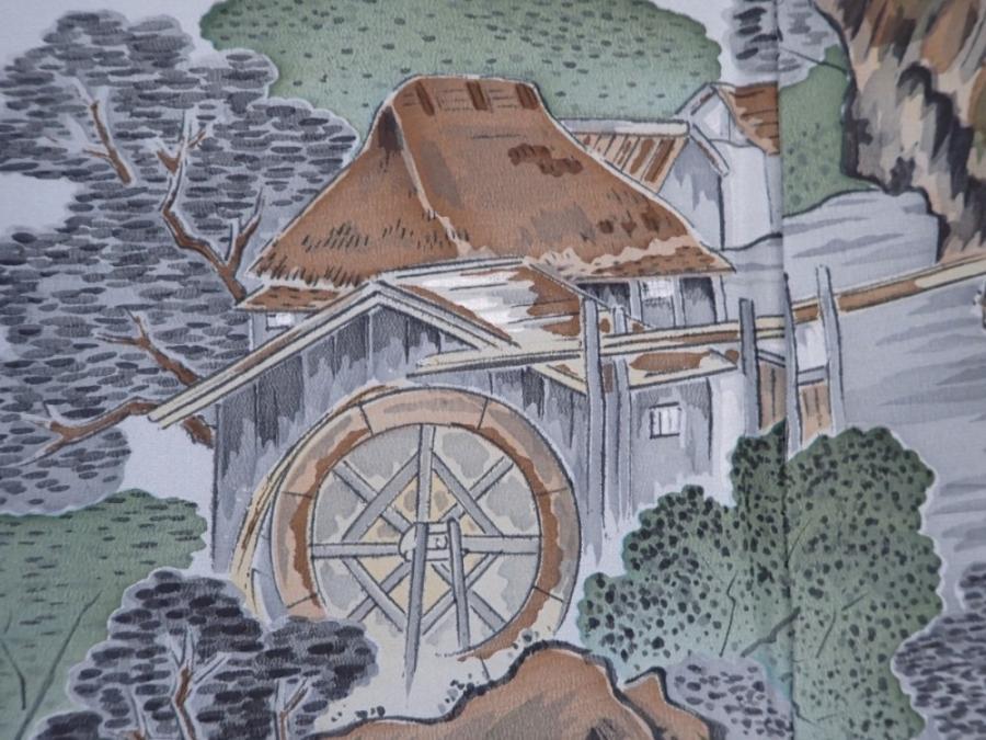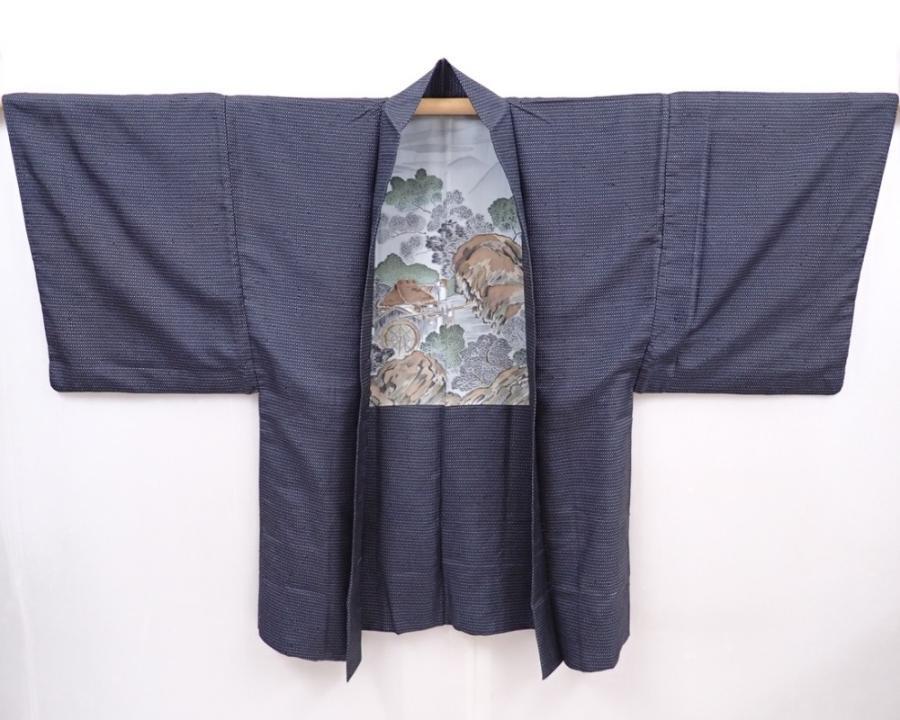 6011T06z680 Vintage Japanese Kimono Silk Men's HAORI Scenery Dark gray