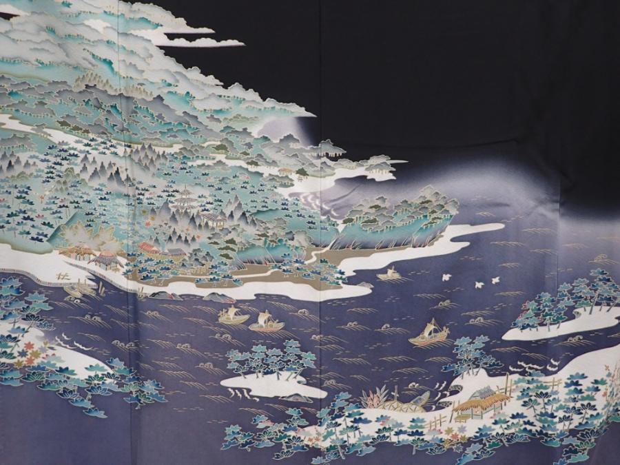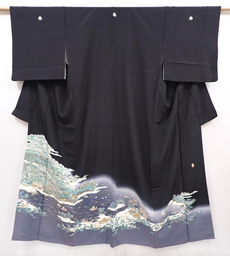 6011T08z1450 Japanese Kimono Silk Artist work TOMESODE Black