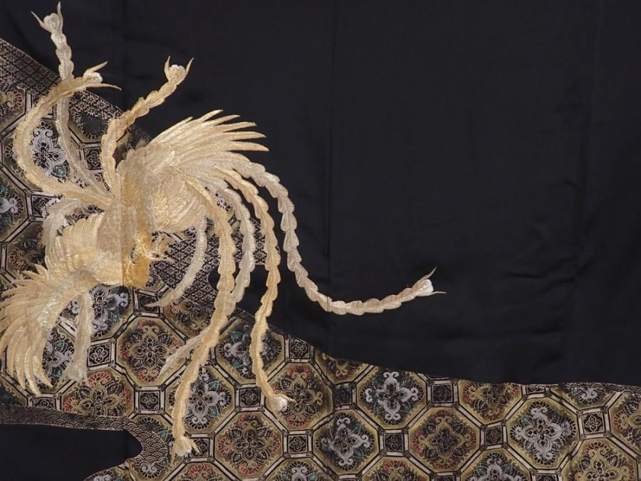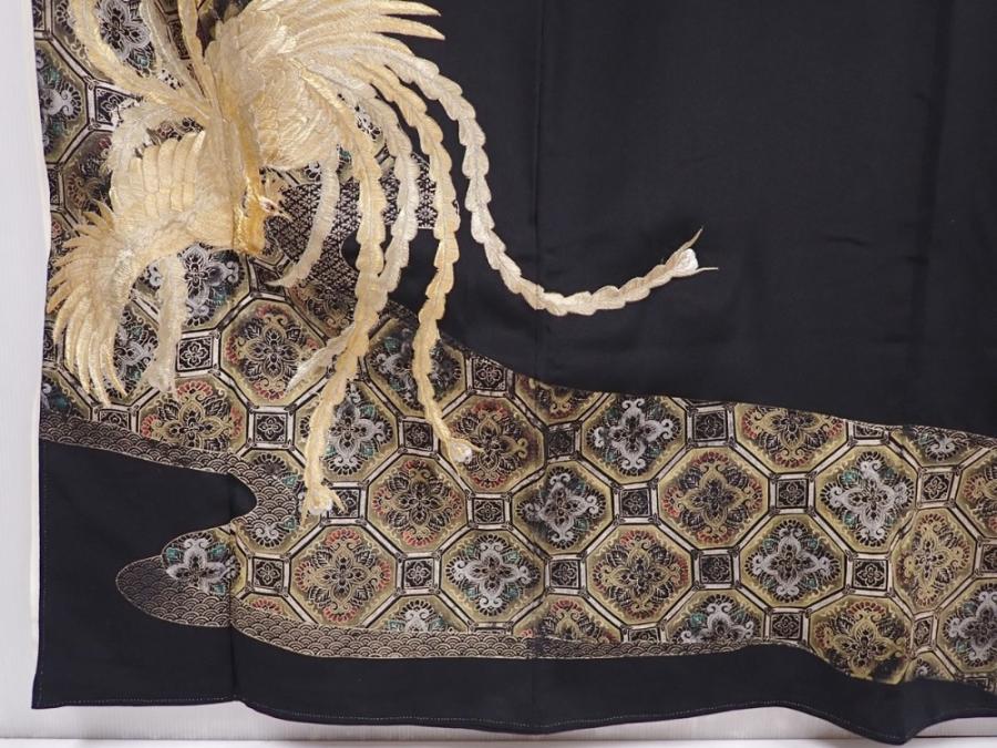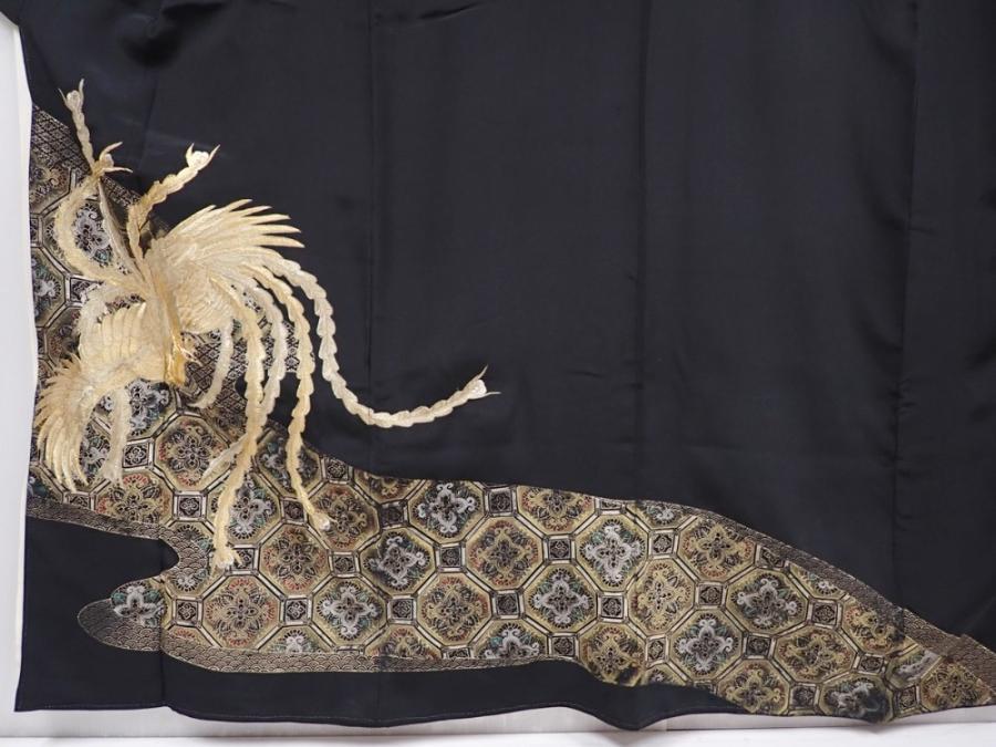 6011T09z1130 Vintage Japanese Kimono Silk TOMESODE Phoenix Black