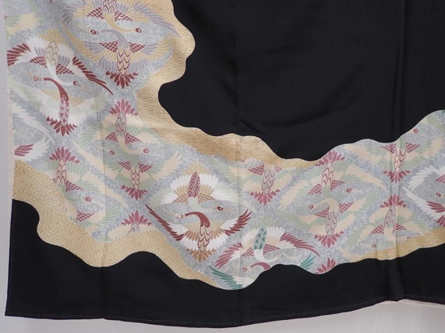6011T12z940 Japanese Kimono Silk TOMESODE Flying crane Black