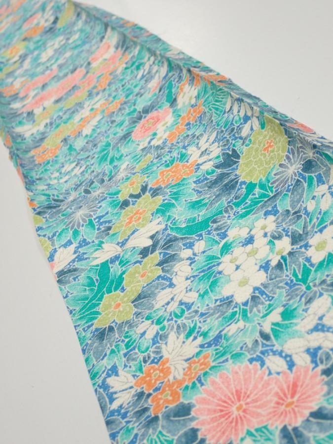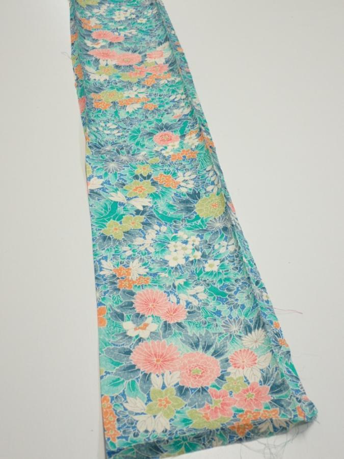 3D07z30 Japanese Kimono Silk FABRIC Flowers Cyan 61.0x7.1
